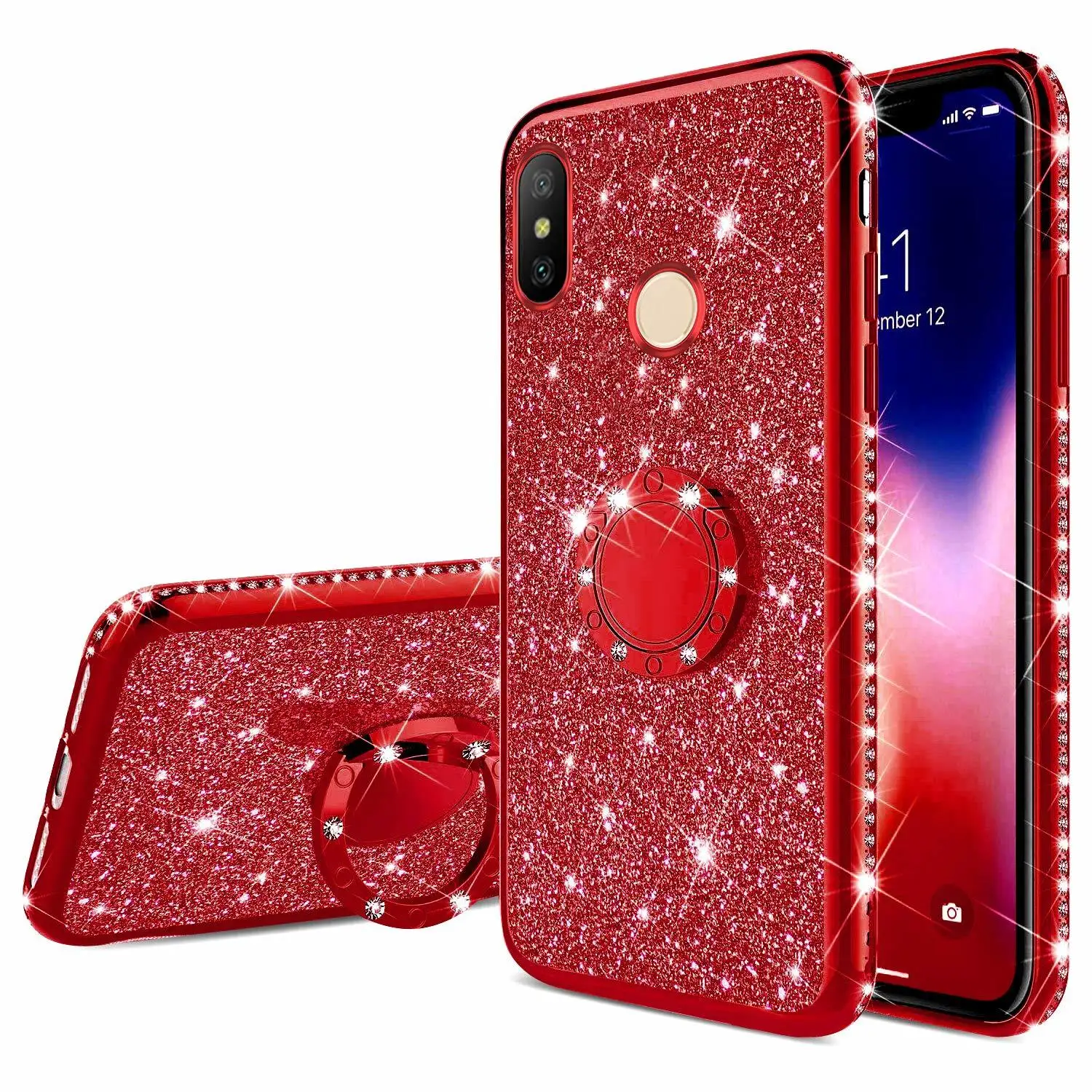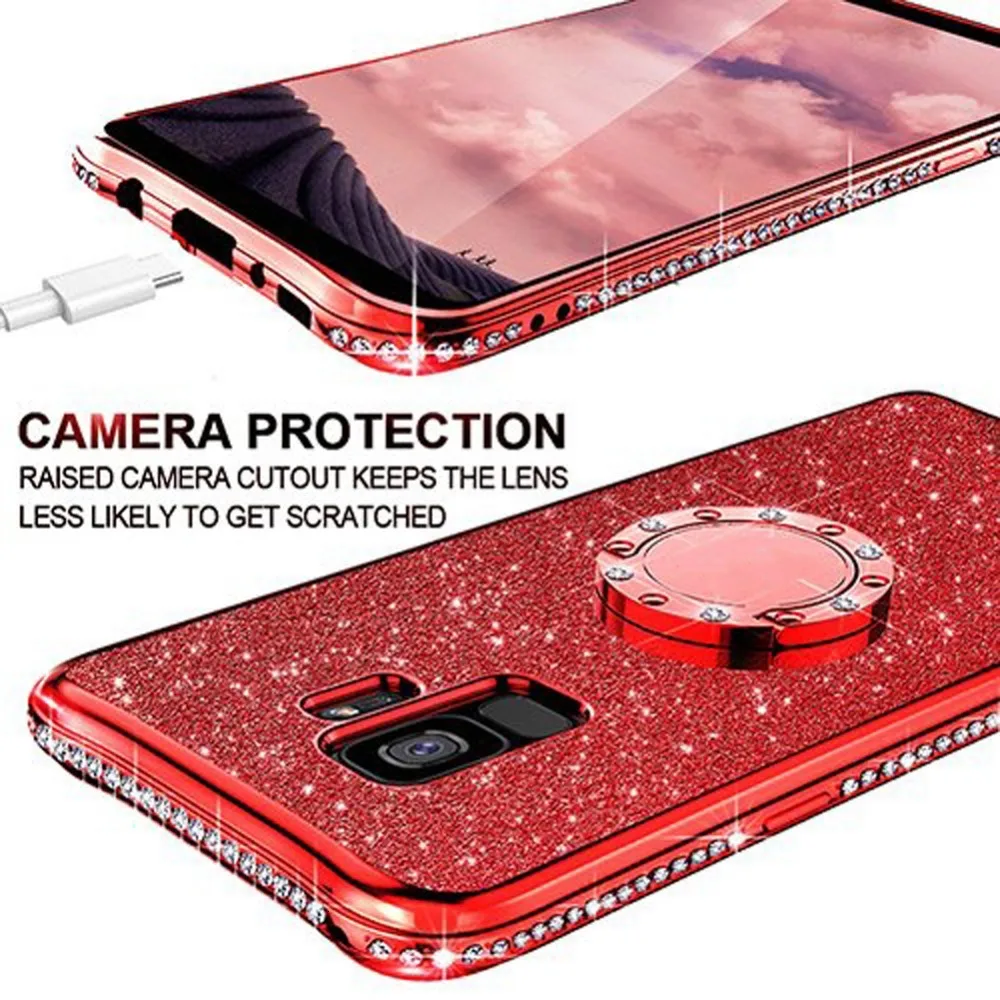 Compatible phone model 0Luxury Fashion Diamond Glitter Slim Soft TPU Case with Ring Car Holde
