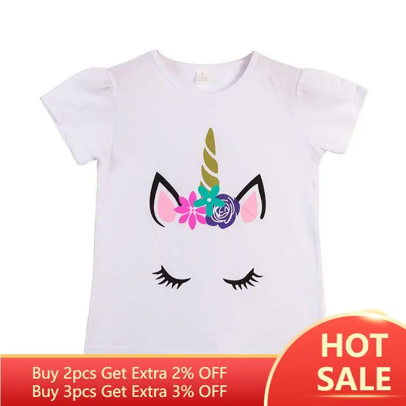 Детские летние футболки с рисунком единорога для девочек, детские топы, одежда с коротким рукавом