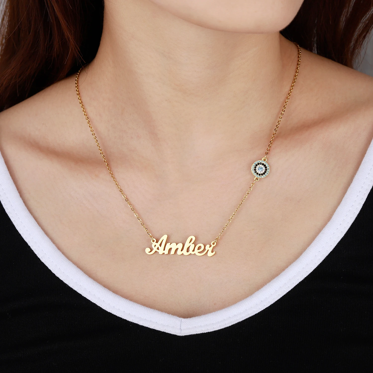 Ожерелье с именем сглаза на заказ, персонализированные подвески, ожерелье ручной работы, цепочка из нержавеющей стали, ювелирные изделия, рождественские подарки для женщин