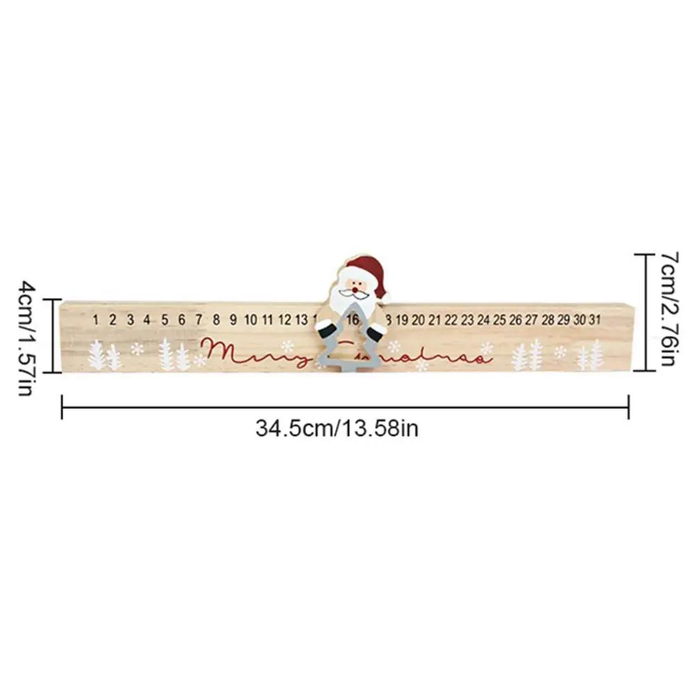Характеристики: Материал: ДеревянныйЦвет: как показаноРазмеры: около 34,5*7*4 см/13,58*2,76 * 1.57inВес: около 106 гУпаковочный лист:1 * Обратный отсчет украшение для календаряПримечания: Из-за световых эффектов и углов съемки цвет изделия и показанный на изображении может иметь нюанс.Из-за ручного измерения возможны отклонения в размере изделия.