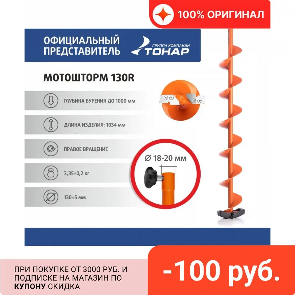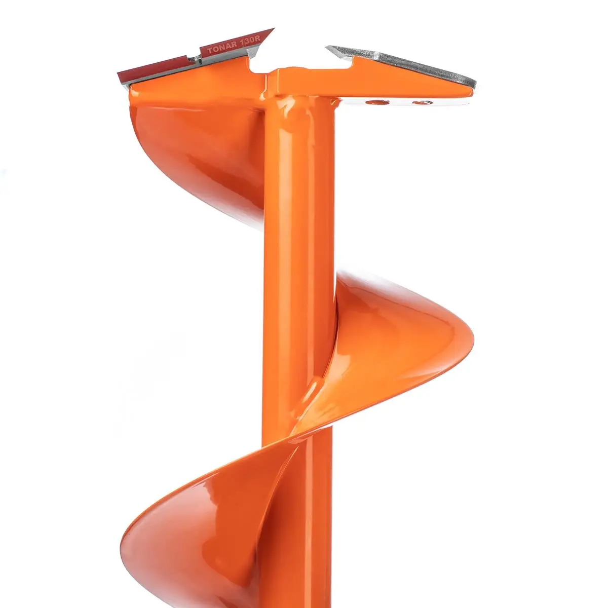 Цельнотянутый шнек с диаметром 130 мм и правым вращением предназначен для комфортного бурения льда с мото или электродвигателем в любых условиях. Выверенный угол атаки делает бурение быстрым. Надежное полимерное покрытие выдерживает резкие колебания температуры и сильные механические нагрузки. Весь цикл полимерной окраски деталей осуществляется на высокотехнологичном оборудовании европейского производства. Шнек под мотобур Мотошторм создан для бурения при помощи мотобура или шуруповерта.Для присоединения шнека к валу мотобура необходимо использовать винт, шайбу и гайку, которые устанавливаются при помощи ключей S6 и S13 (в комплекте). Допускается присоединение к шнеку мотобуров с диаметром выходного вала от 18 до 20 мм.При присоединении шнека к шуруповерту необходимо использовать адаптер АШ-25У/ АШ-36У/ АШ-36УД (доп. опция) и винт-барашек М8 (в комплекте). Допускается присоединение к шнеку адаптеров с диаметром выходного вала от 18 до 20 мм.Для наилучшего результата при использовании мотобура или шуруповерта рекомендуем использовать ножи (арт. NLT-130R.SL) для правого вращения производства ГК ТОНАР.Если толщина льда более одного метра, то на шнек необходимо установить Удлинитель шнека УШ-250.19 или УШ-400.19, которые позволят увеличить глубину бурения на 25 и 40 см соответственно.Технические характеристики:Правое вращение.Диаметр бурения: 130 мм.Глубина бурения: 1000 мм.Длина изделия: 1034 мм. Вес: 2,35 кг.Комплект поставки:Шнек - 1 шт;Ножи - 2 шт;Винт-барашек М8 - 1 шт;Винт М6х12 - 4 шт;Футляр защитный - 1 шт;Винт М8х35 - 1 шт;Шайба ø8 - 1 шт;Гайка М8 - 1 шт;Ключ шестигранный S6 - 1 шт;Ключ S13 - 1 шт;Паспорт - 1 шт;