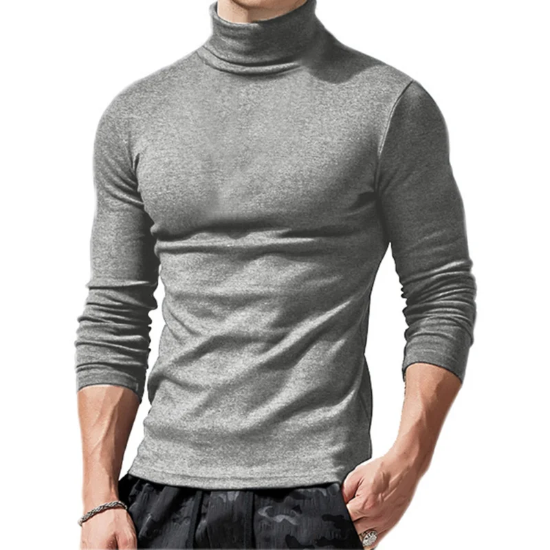 Свитер мужской с высоким воротом, повседневная Облегающая рубашка, ...