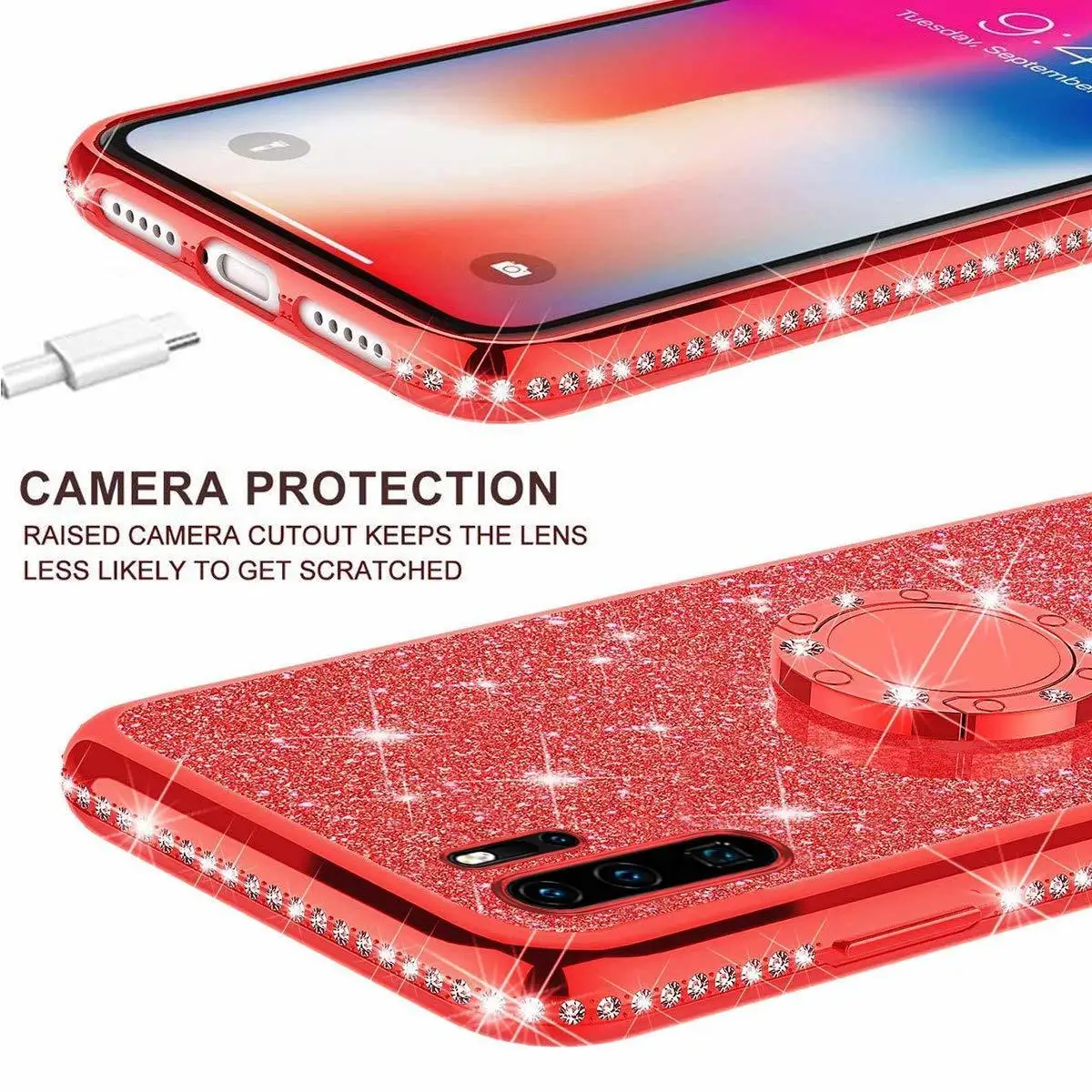 Мягкий чехол с бриллиантовым кольцом для HUAWEI P20 P30 Lite Pro P ...
