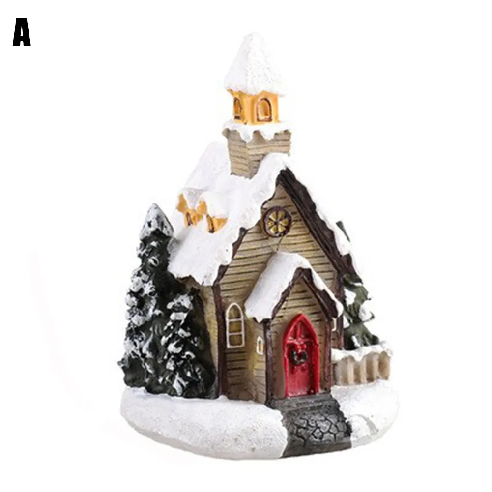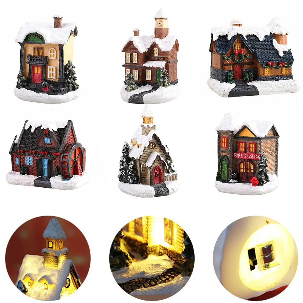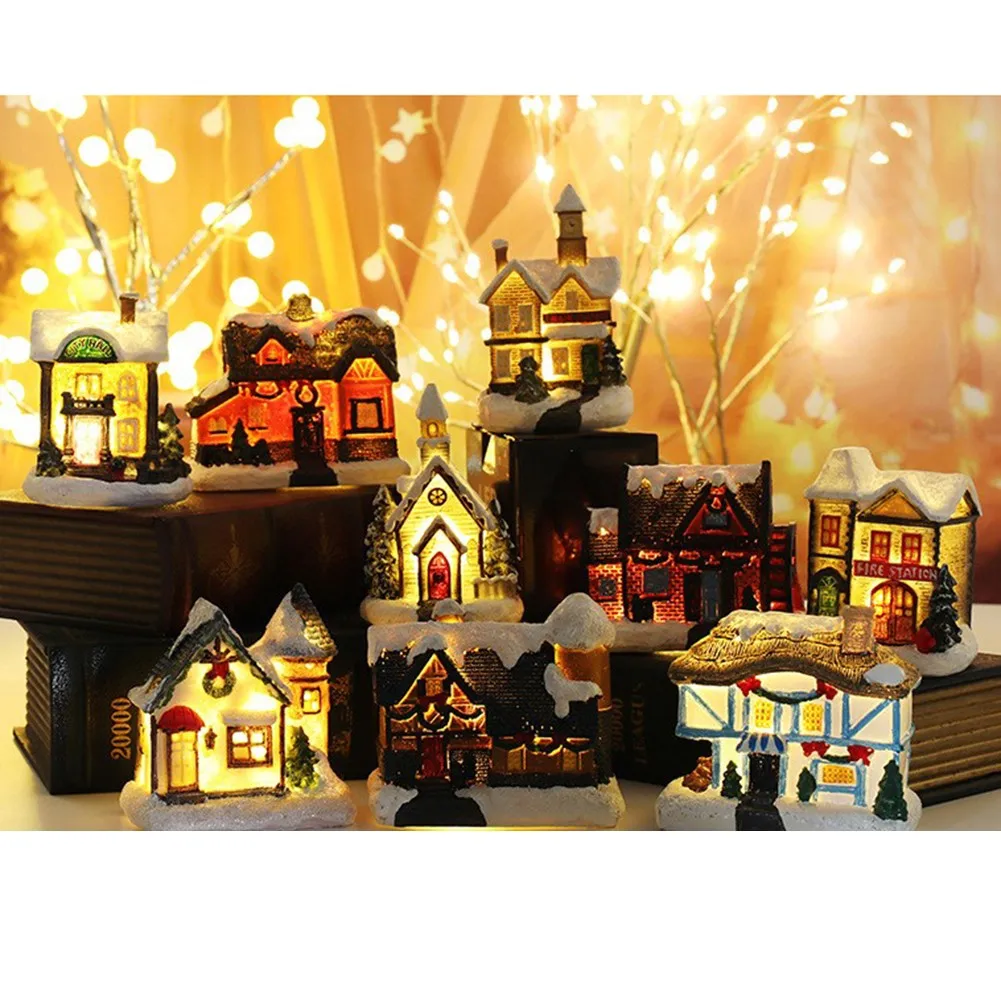 Рождественский маленький домик из смолы, светодиодные огни, Деревенский домик с теплой подсветкой, микро ландшафтное здание, домашние центры, новогодние украшения