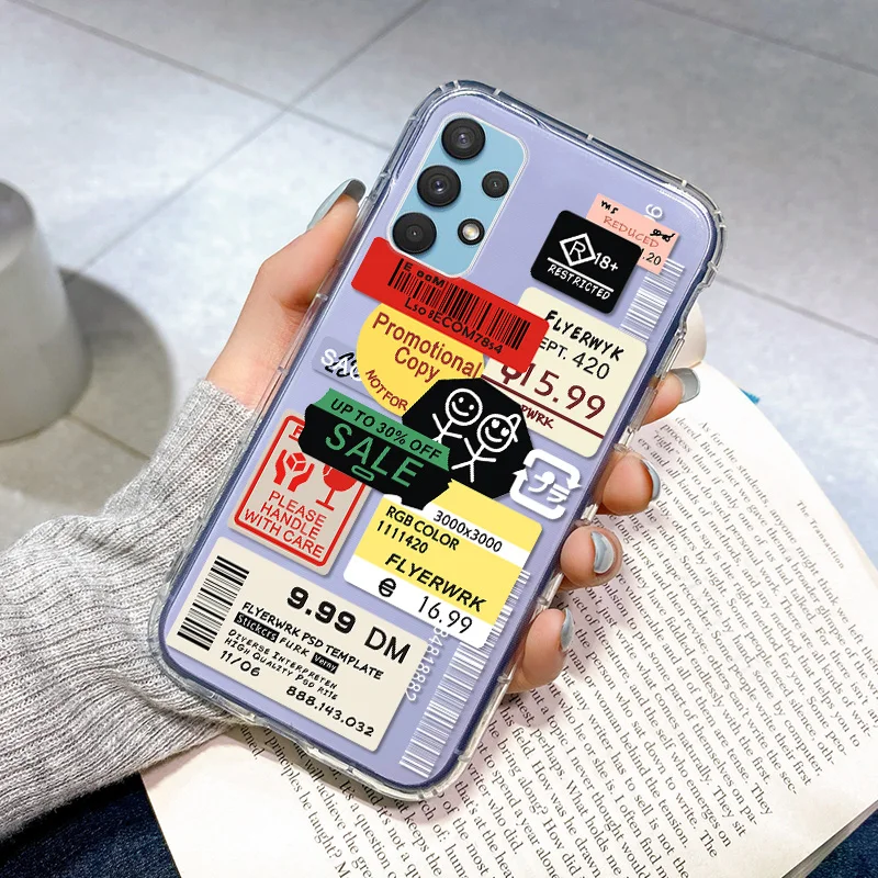 Mobile Phone Case 5Clear Art Lable Phone Case For Samsung A32(4G) Case Cover