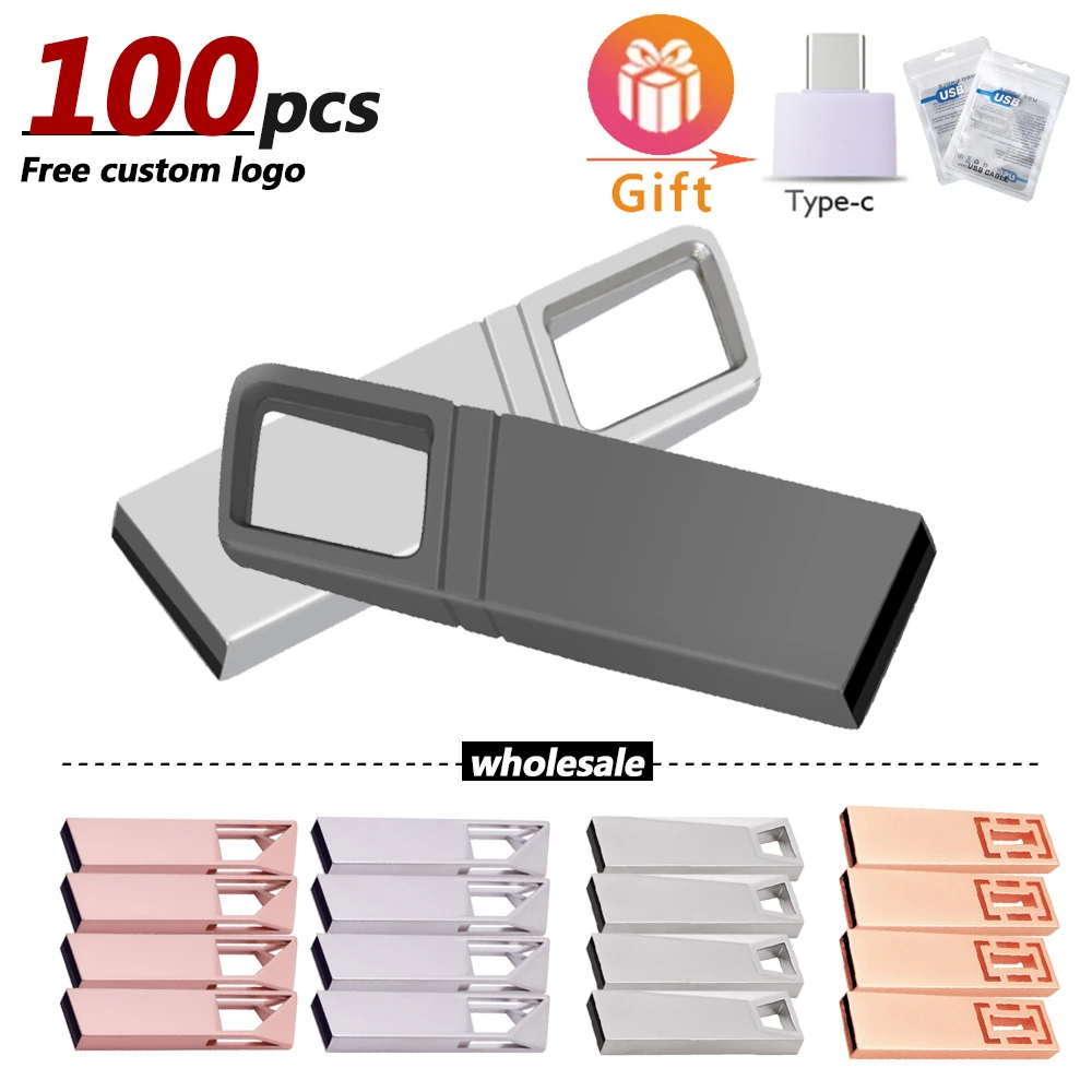 100 шт. высокоскоростной металлический флеш-накопитель USB 2,0, 16 ГБ, 32 ГБ, 64 ГБ, 128 ГБ, флеш-накопитель, водонепроницаемый usb-накопитель, мини-флешка, usb-накопитель