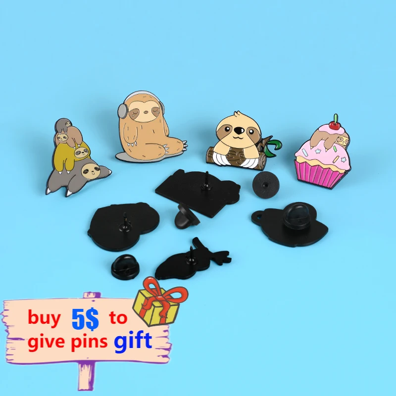 Брошь из металлического сплава с изображением милых животных, Ленив...