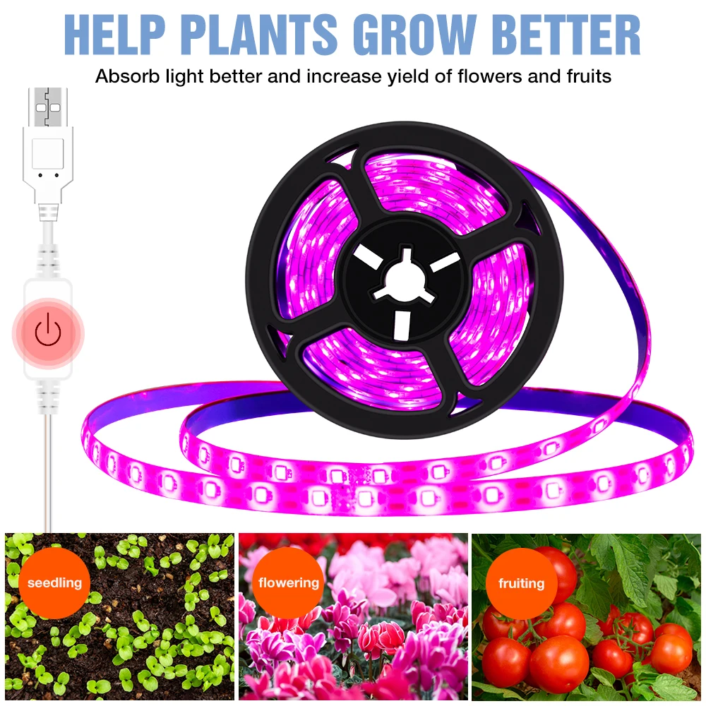 Светодиодная лента для растений, 5 В, фитолампа полного спектра с сенсорным управлением от USB, приглушаемая лента для роста растений, 0,5 м, 1 м, 2 м, 3 м, светодиодная лампа для теплиц, посадки s