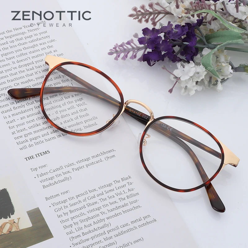Круглые оптические оправы ZENOTTIC из сплава ацетата для мужчин и ж...