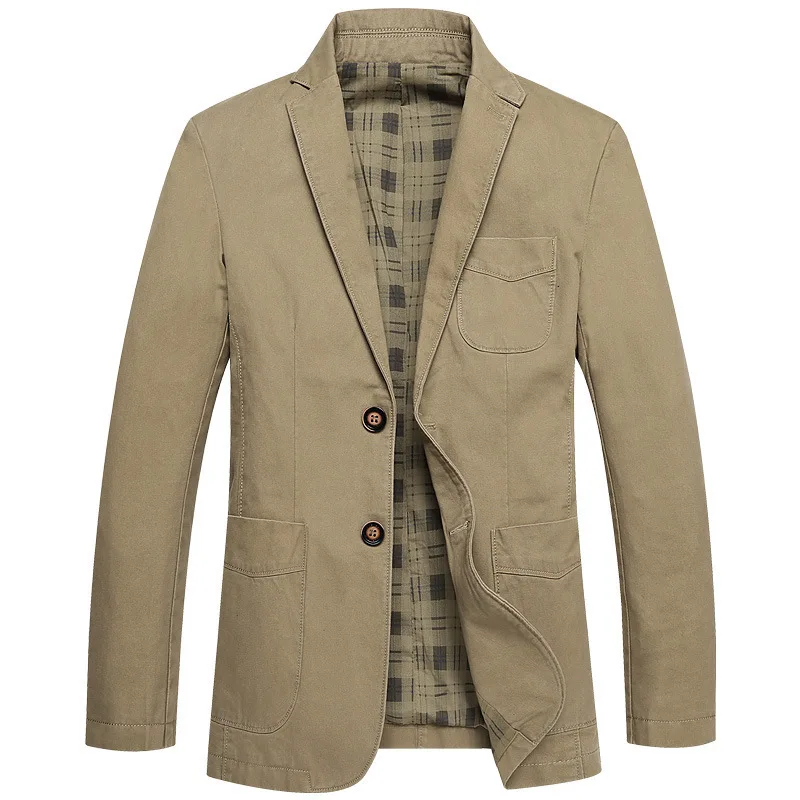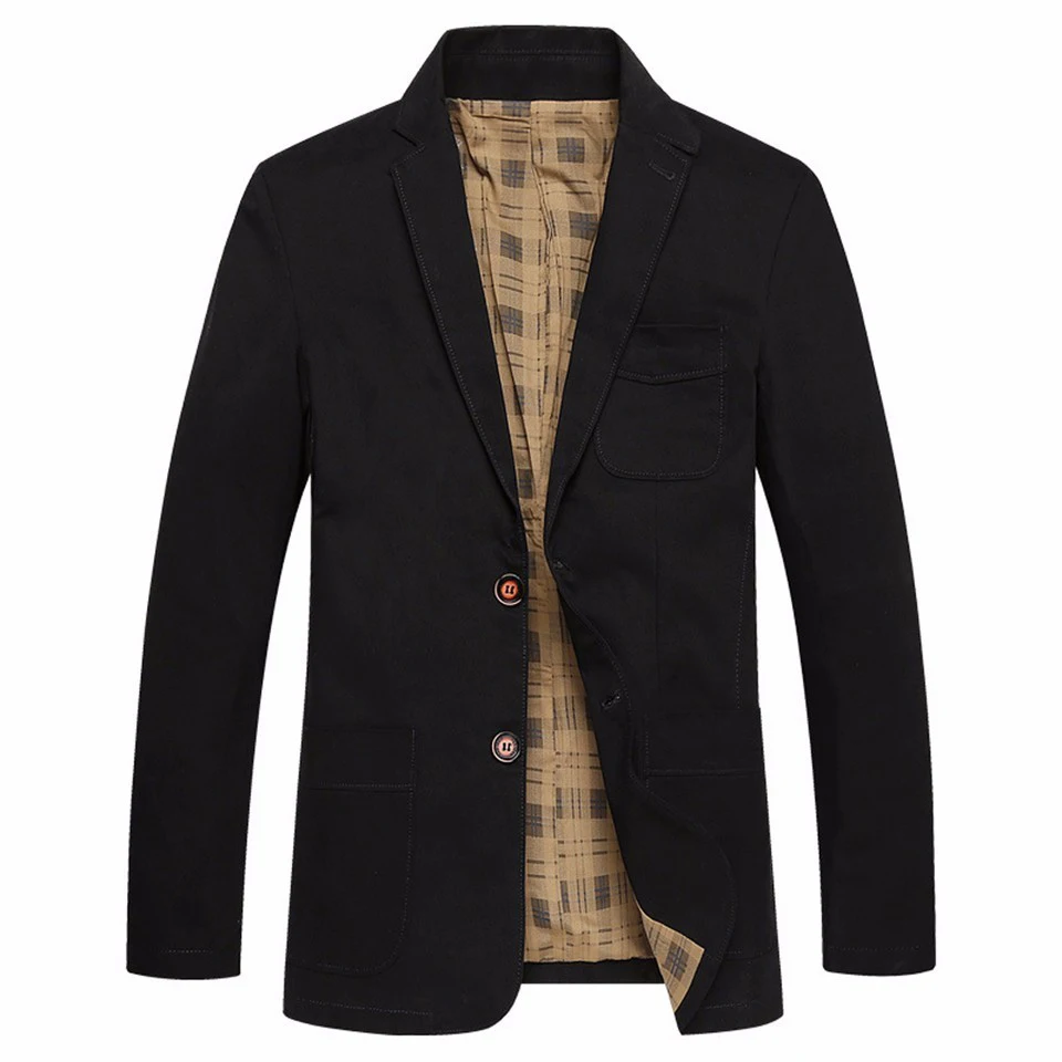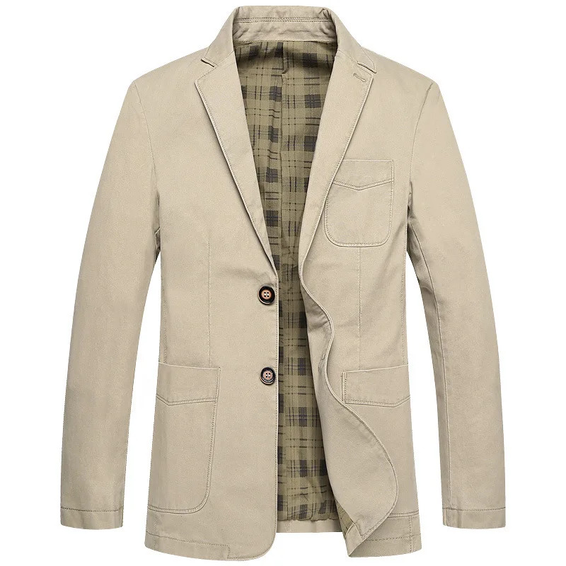 Пиджак мужской с карманами на пуговицах, Повседневная Уличная одежда, приталенный Блейзер из 100% хлопка, верхняя одежда, цвета хаки, зеленый, черный, весна-осень