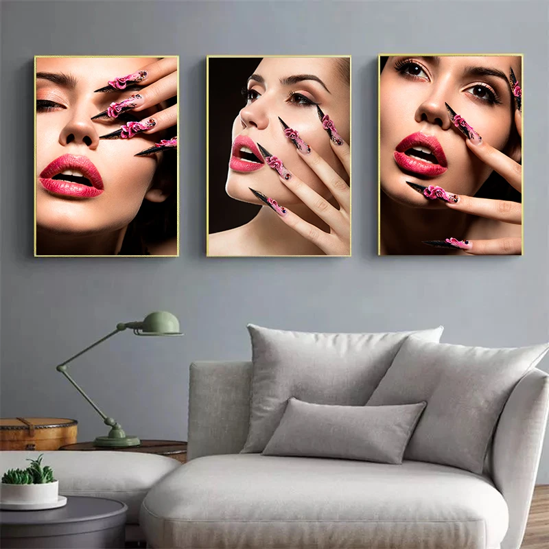 Модный постер для дизайна ногтей в виде губной помады, женский макияж, печать на холсте, художественная живопись, современное изображение на стену, гостиная, девочка, украшение для дома