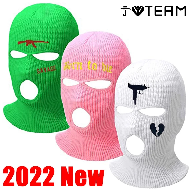 Новинка 2022, Модный трикотажный чехол на все лицо с 3 отверстиями, лыжная гетра на шею, зимняя балаклава, теплая вязаная шапка для спорта на открытом воздухе, балаклава