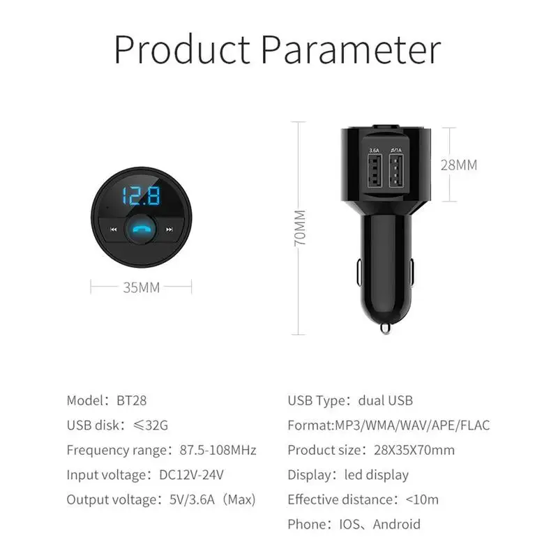 Автомобильный беспроводной FM-модулятор, USB устройство для быстрой зарядки, 3,6 а, с функцией Hands-Free