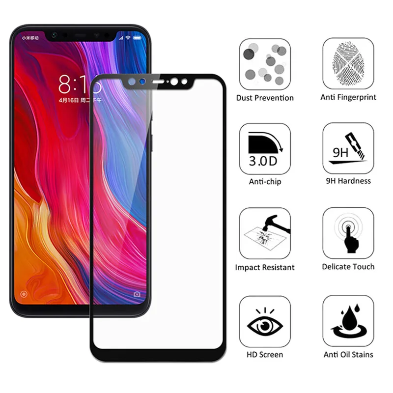 3 шт полное покрытие закаленное стекло + 3 шт пленка для объективаXiaomi Mi 8 Lite