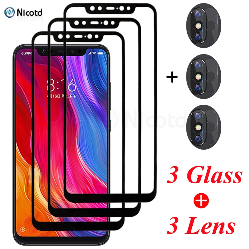 3 шт полное покрытие закаленное стекло + 3 шт пленка для объектива для Xiaomi Mi 8
