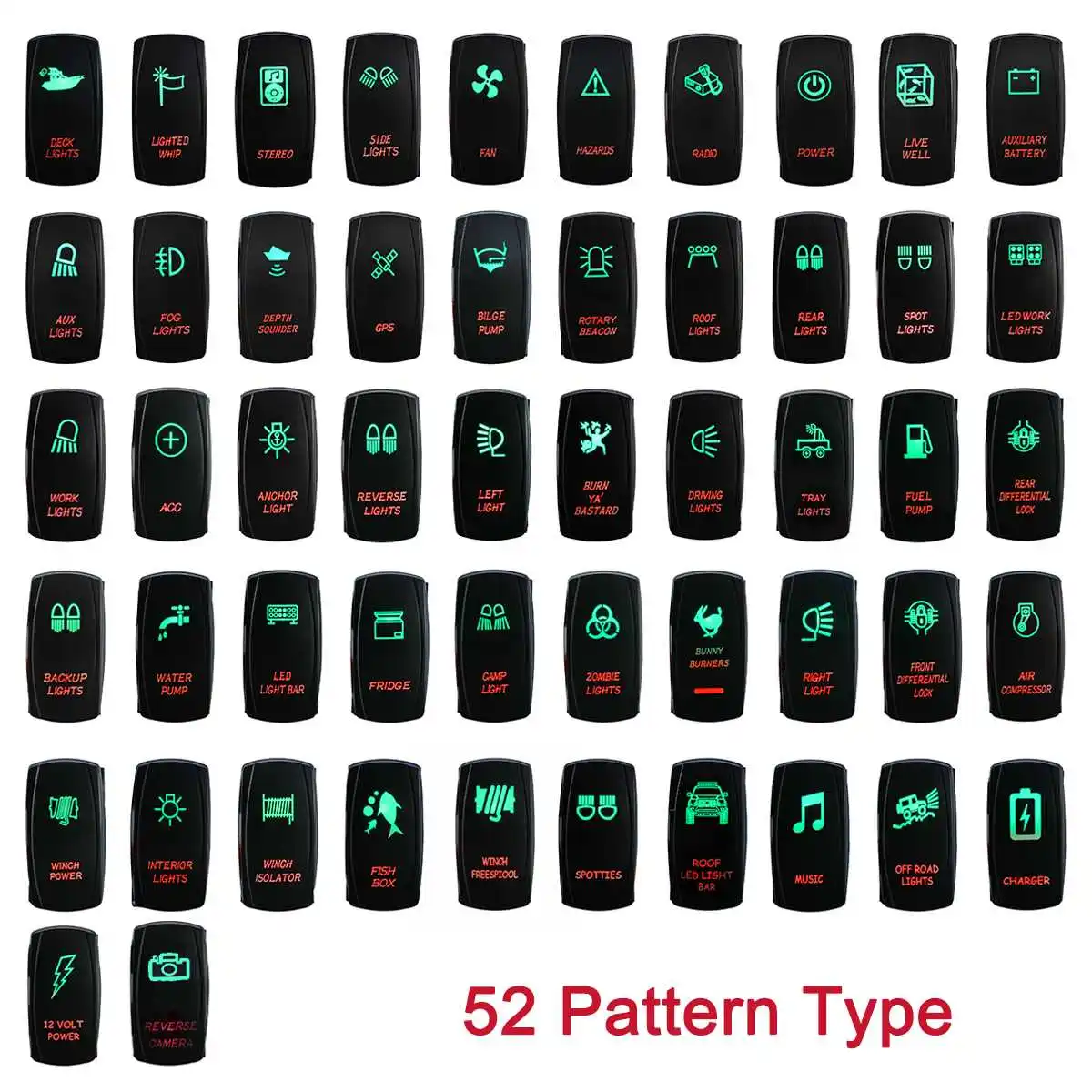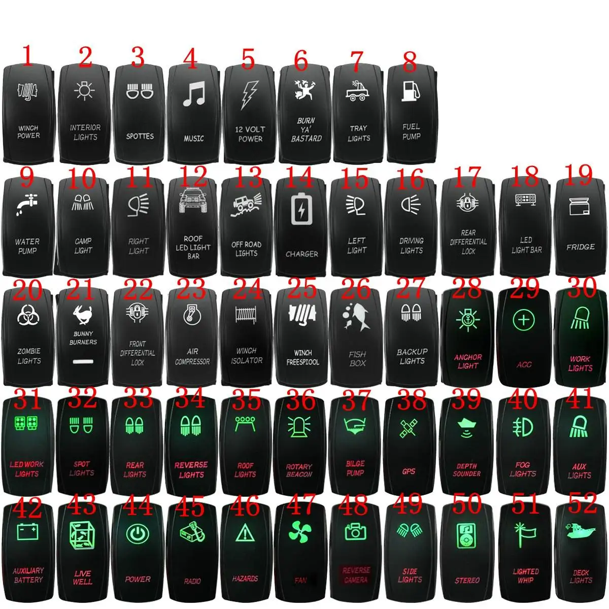 Автомобильный лодочный кулисный выключатель 12 В 24 В, 5 контактов, зеленый, красный двойной светодиодный индикатор, клавишный выключатель, кнопка для морского караван, 4x4, RV, автодома