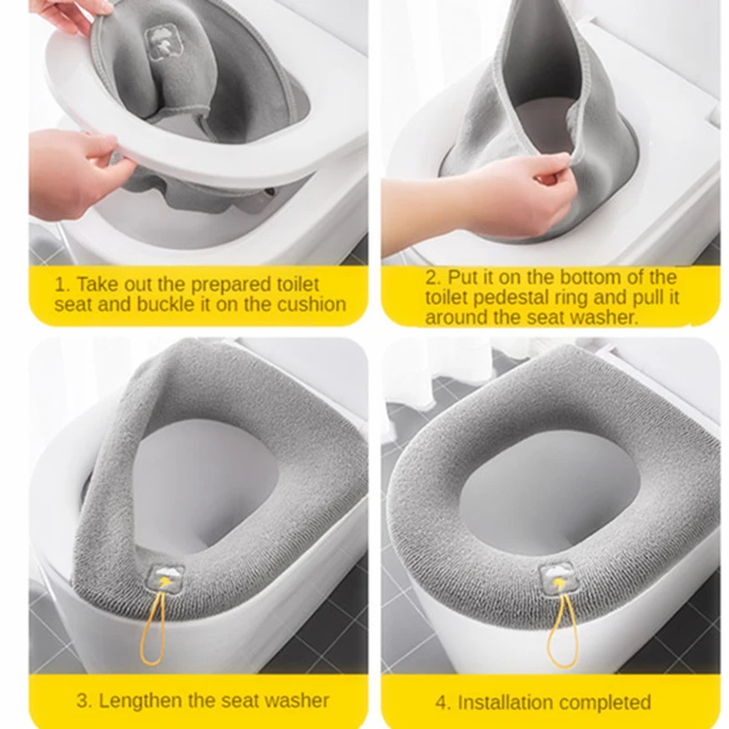 Чехол для сиденья унитаза, подогреватель, мягкая зимняя подушка, подстилка для биде, аксессуары для ванной комнаты, универсальный вязаный домашний