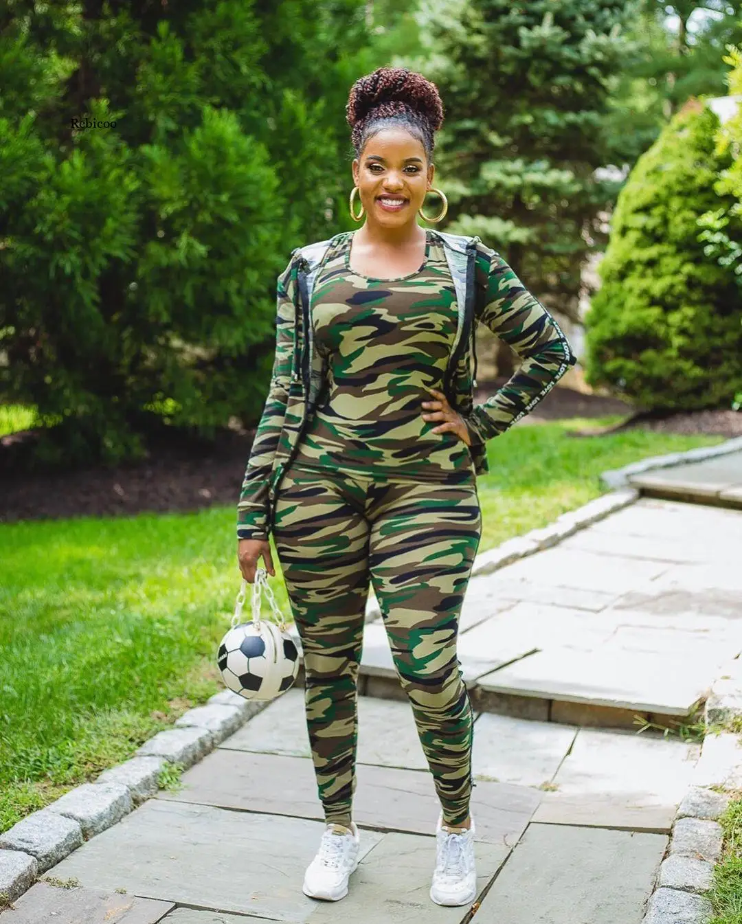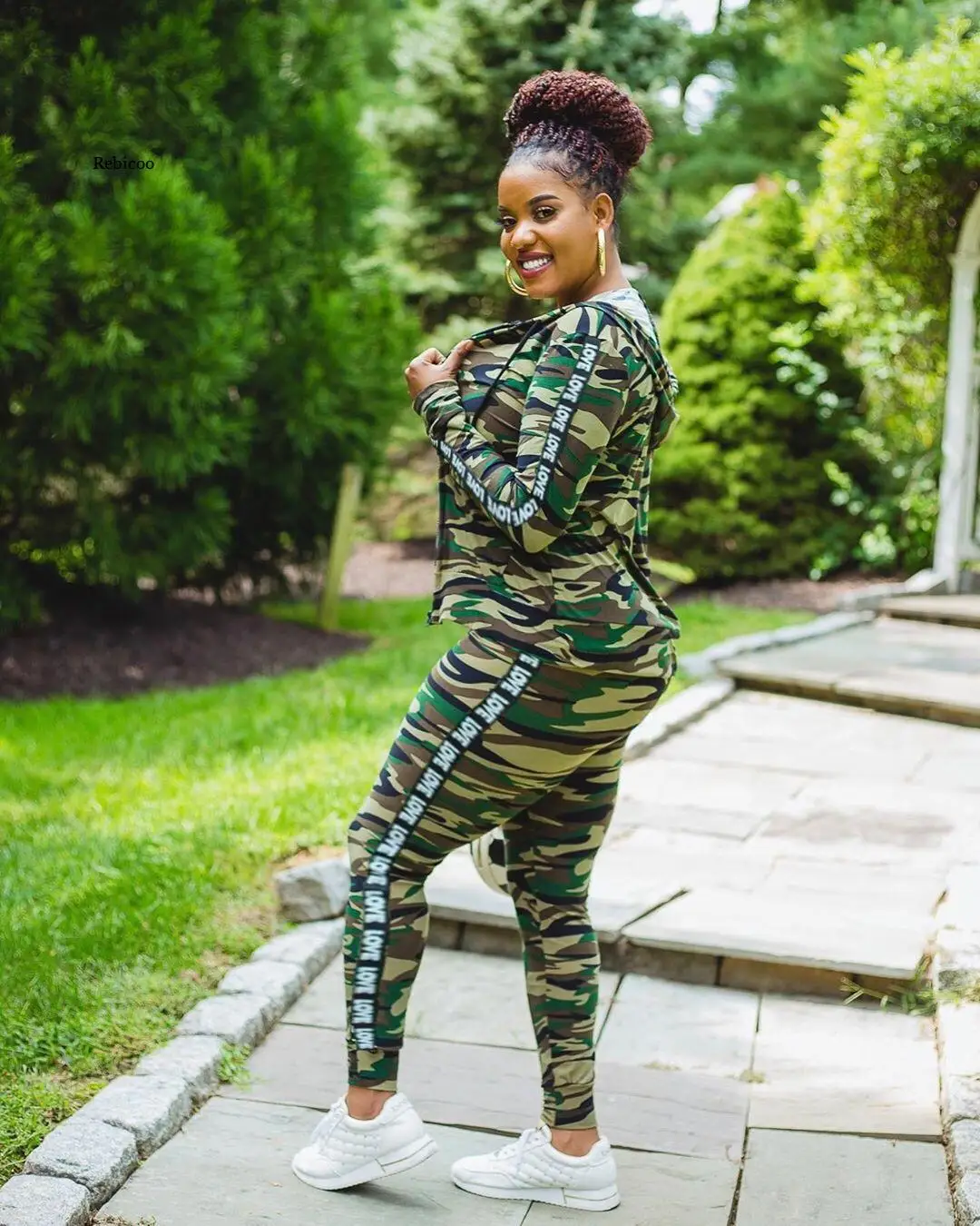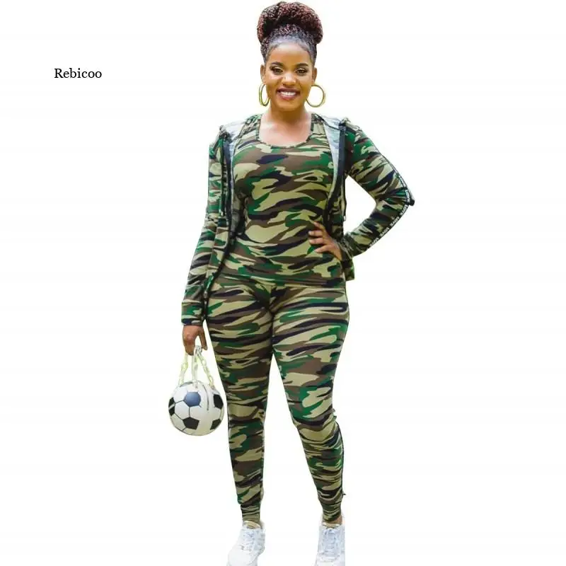 Женский Камуфляжный спортивный костюм, жакет на молнии с капюшоном и облегающие брюки