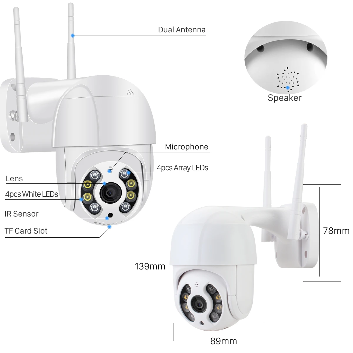 Встроенный 4 шт. Белый светодиодный и 4 шт. ИК-светодиодный.Отслеживайте движущиеся объекты, автоматически освещайте. Это впечатляющее маленькое оружие против совершения действий.Камера также может показать красочное видение ночью, есть три режима ночи для вас, чтобы выбрать.