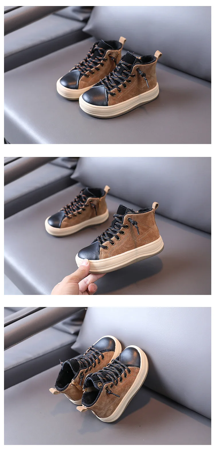 Зимние новые детские повседневные кроссовки; Обувь из натуральной кожи для маленьких мальчиков; Детские Брендовые спортивные кроссовки; Кроссовки для девочек
