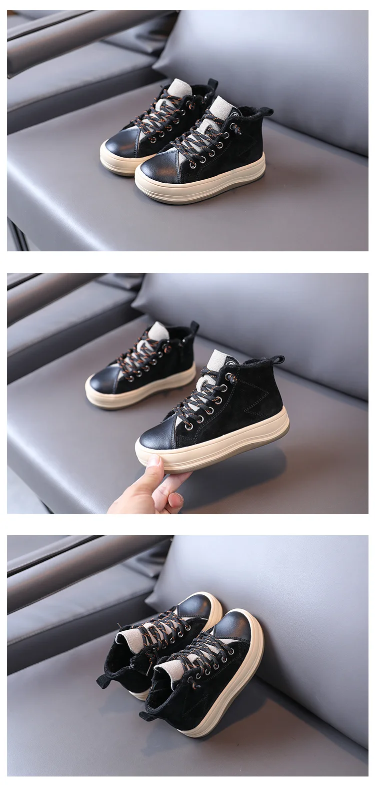 Зимние новые детские повседневные кроссовки для маленьких мальчиков, обувь из натуральной кожи, Детские Брендовые спортивные кроссовки для девочек, кроссовки на массивной подошве для тренировок