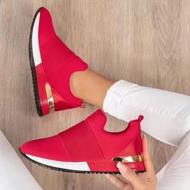 Кроссовки без шнуровки женские, Вулканизированная подошва, повседневная спортивная обувь, однотонные, 2021