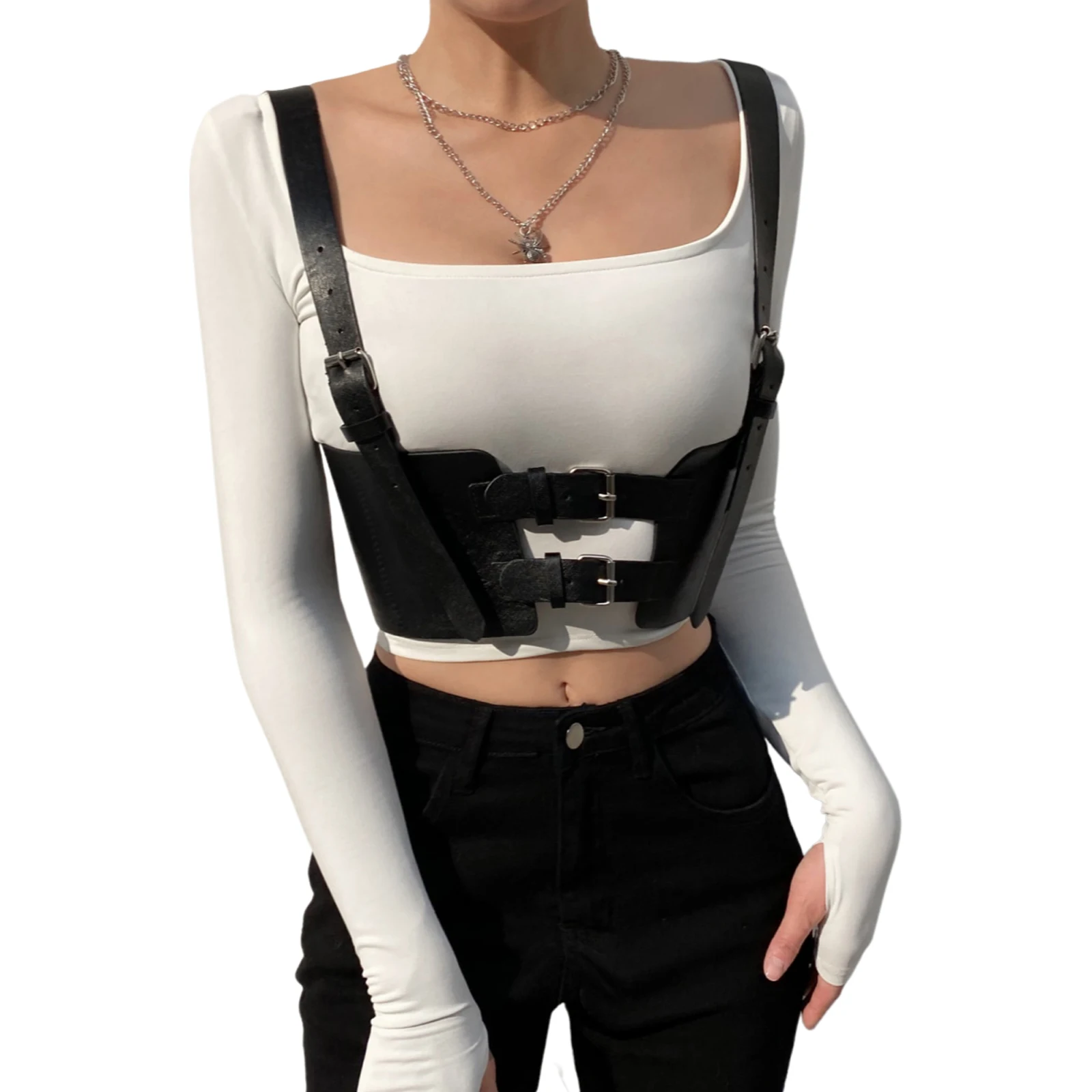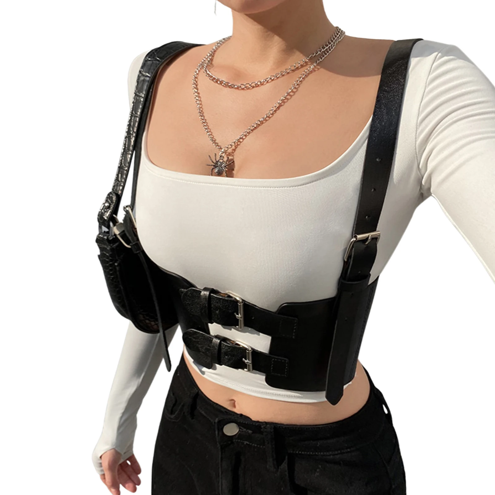 Женский корсет на талию из искусственной кожи, регулируемый Топ, однотонный облегающий корсет с эффектом пуш-ап, бюстье, аксессуары для рубашек и платьев