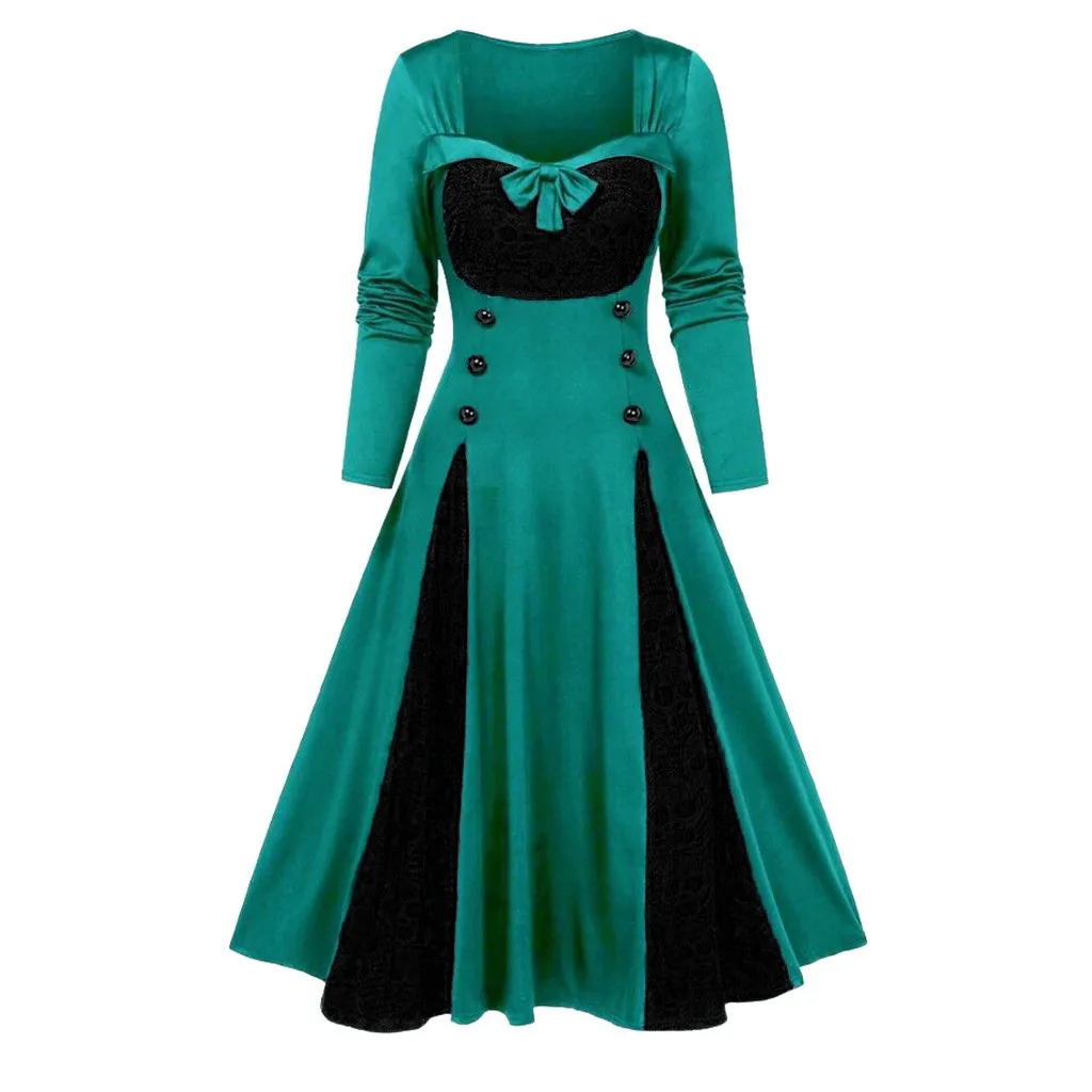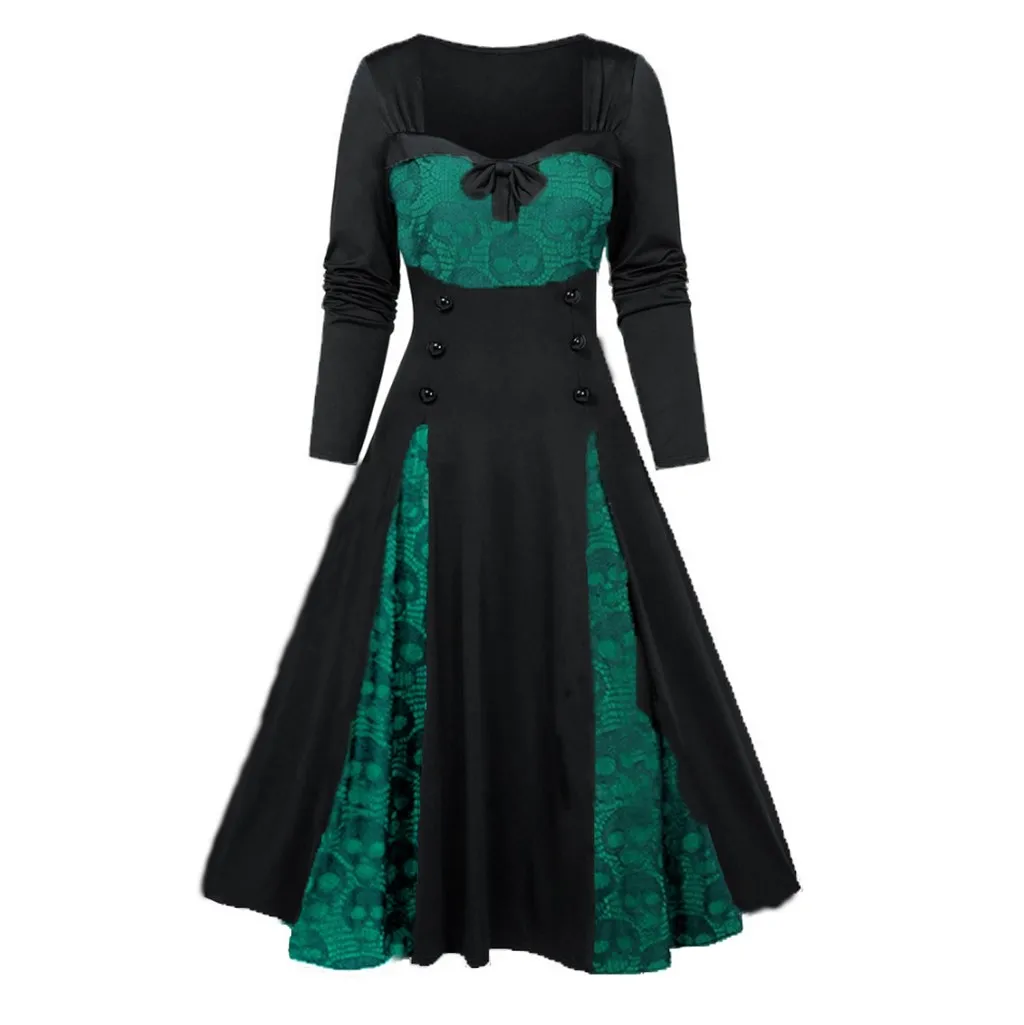 Женский костюм вампира и ведьмы, кружевное платье большого размера с имитацией пуговиц и бантиком, костюмы для косплея на Хэллоуин