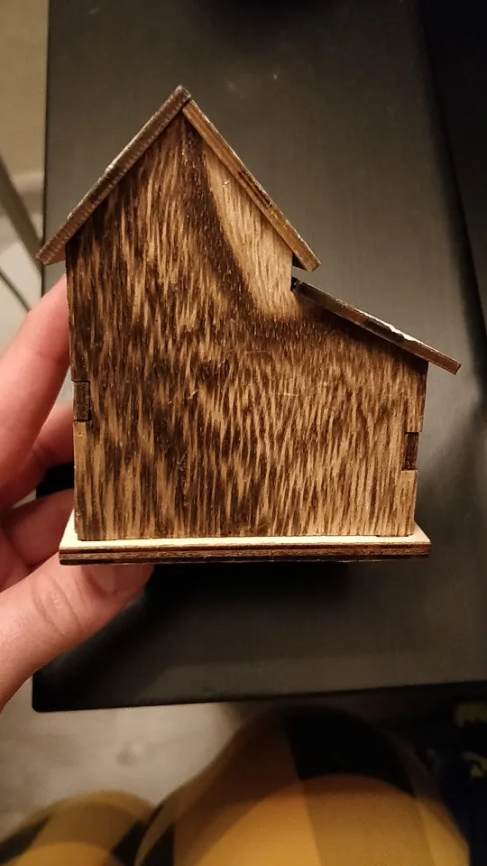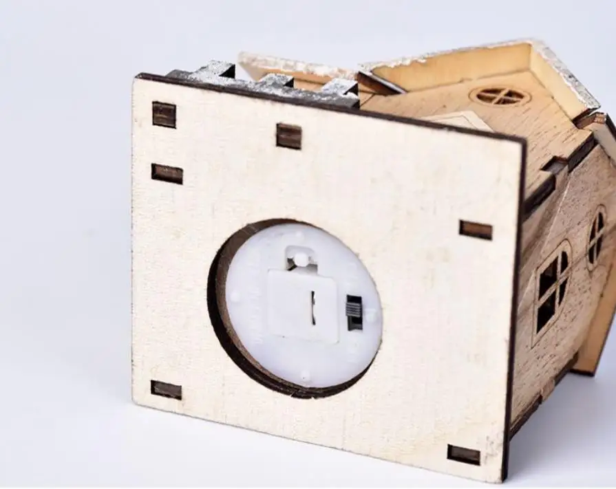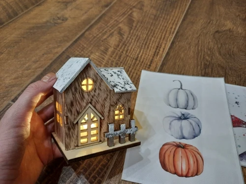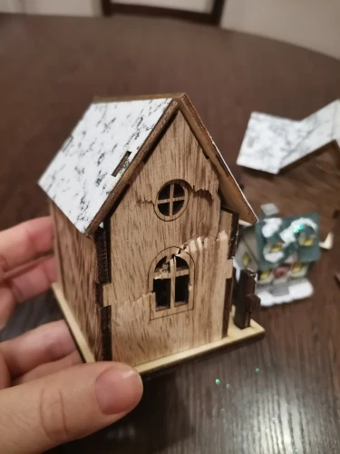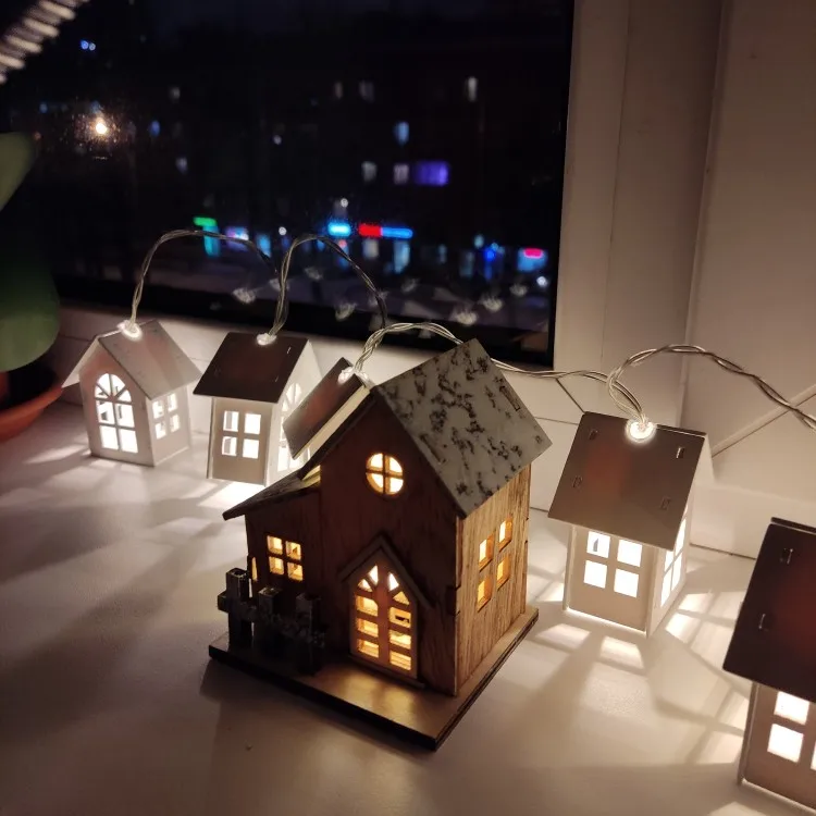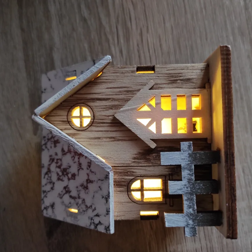 отличные деревянные домики. собраны в целом добротно, внутри небольшая лампочка теплого света. единственный минус, нужно запастись батарейками, очень быстро садятся