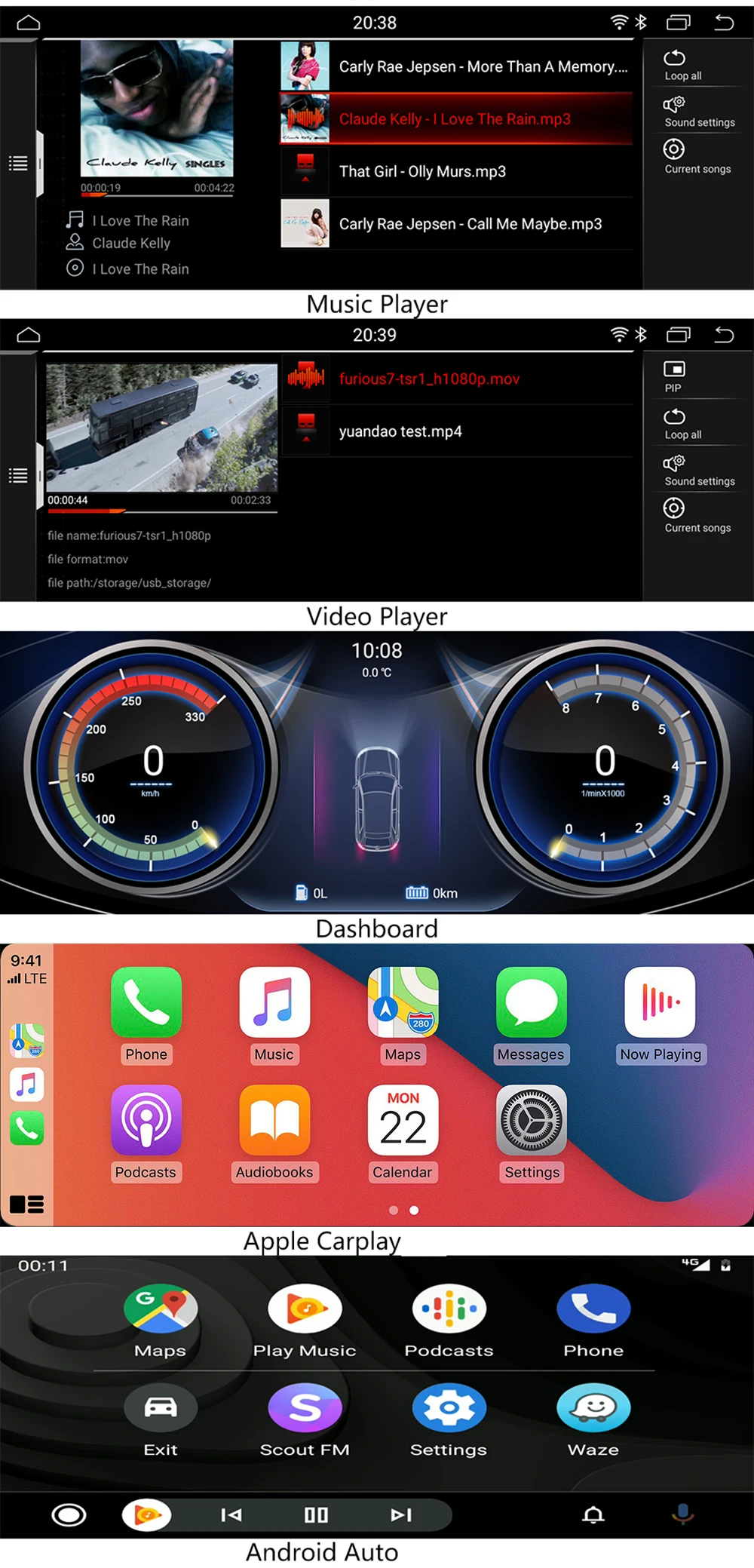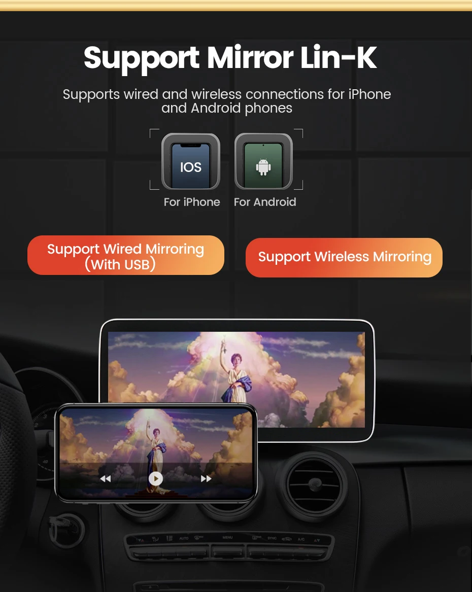 Android 11,0 система + API30 + Восьмиядерный + DDR3 6 ГБ/8 Гб флэш + 128 Гб/256 ГБ памяти+Беспроводная carplay + Audroid Auto +Встроенный Wifi + 4G LTE + gps-навигация + управление рулевым колесом + зеркальная связь + Bluetooth + Встроенный микрофон + 4K Vedio Play + IPS экран