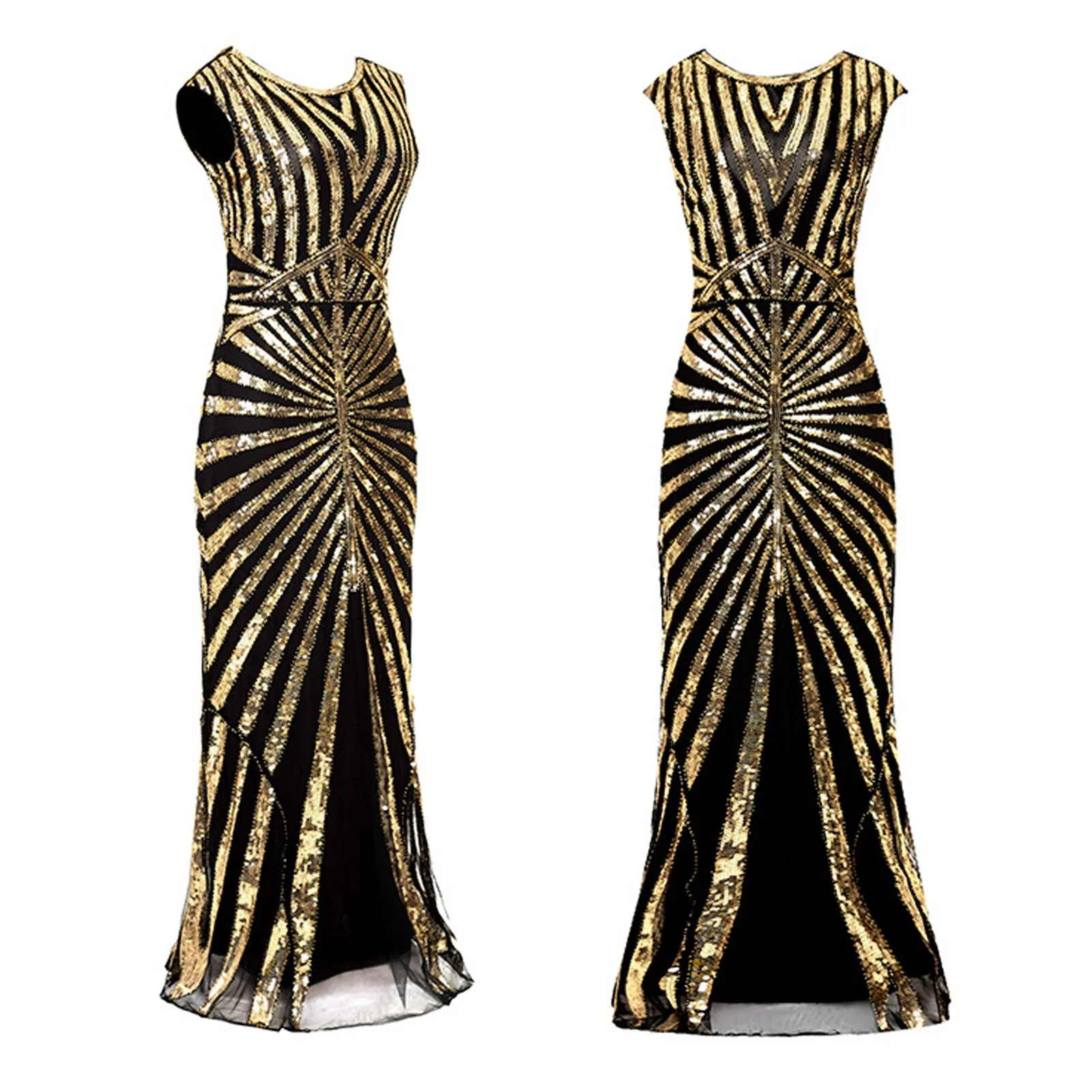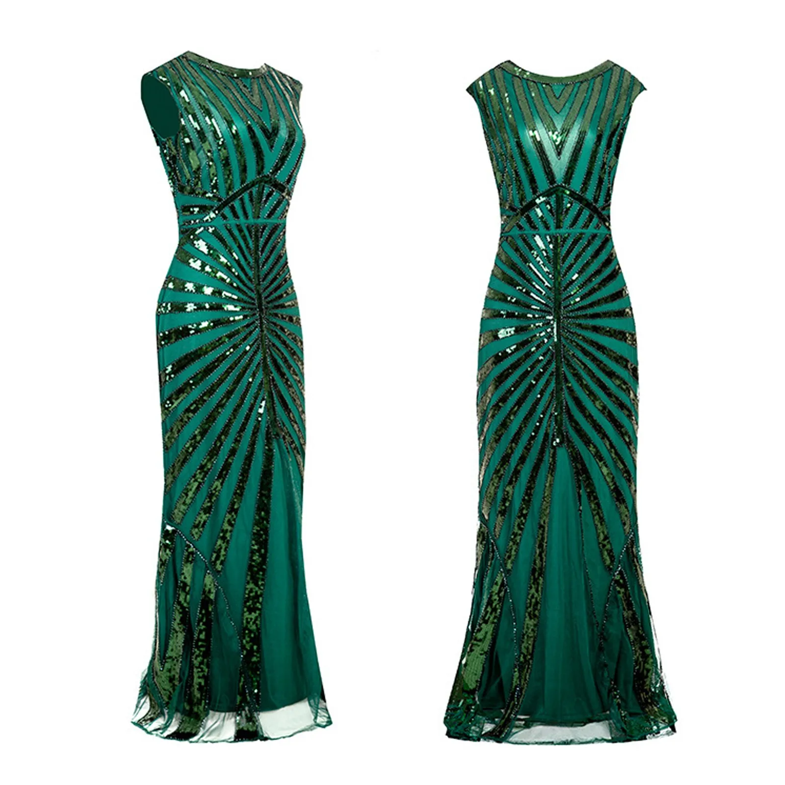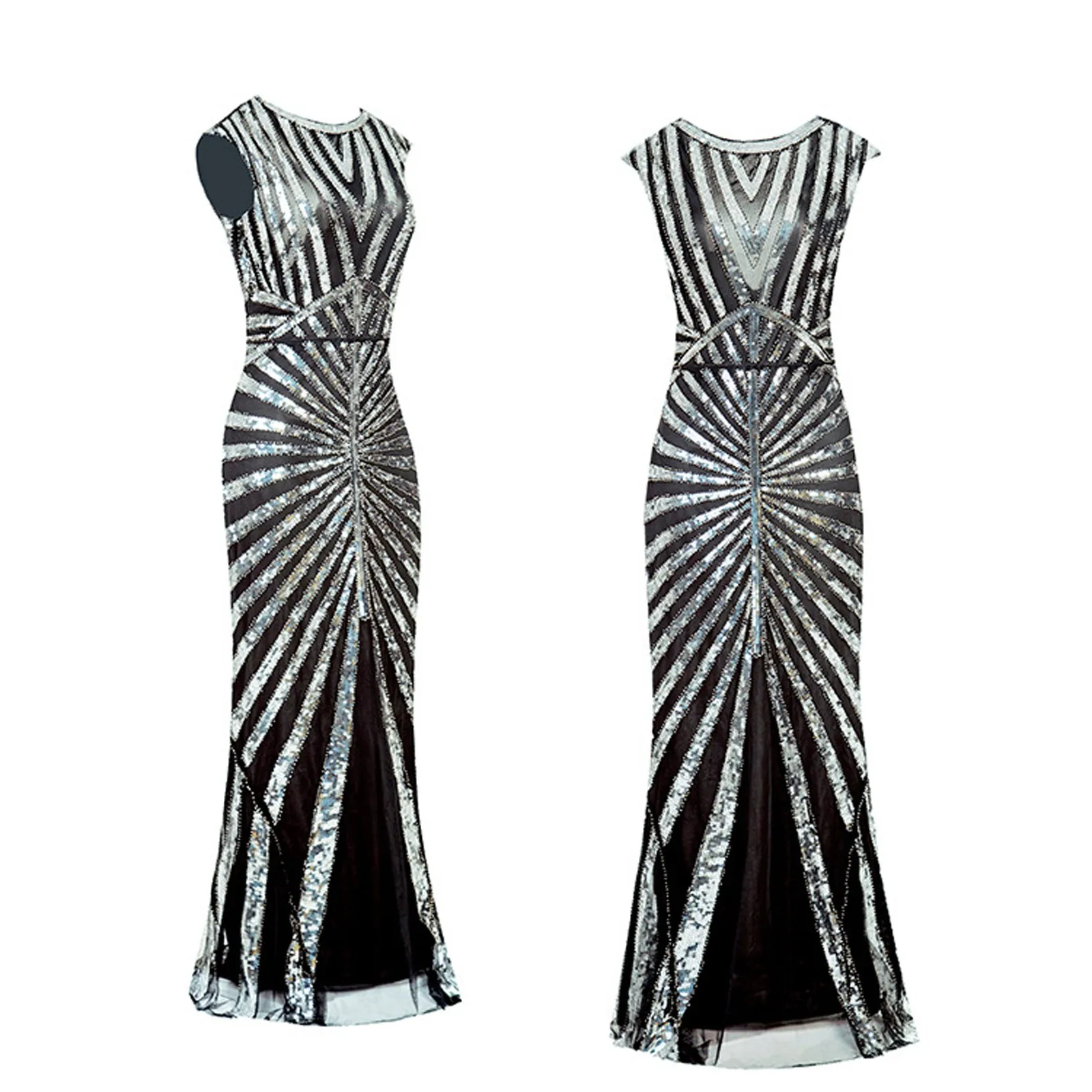 Женское длинное платье-чартсби 1920-х годов, винтажное платье-Чарльстон с круглым вырезом, без рукавов, с открытой спиной, коктейльное платье макси для выпускного вечера