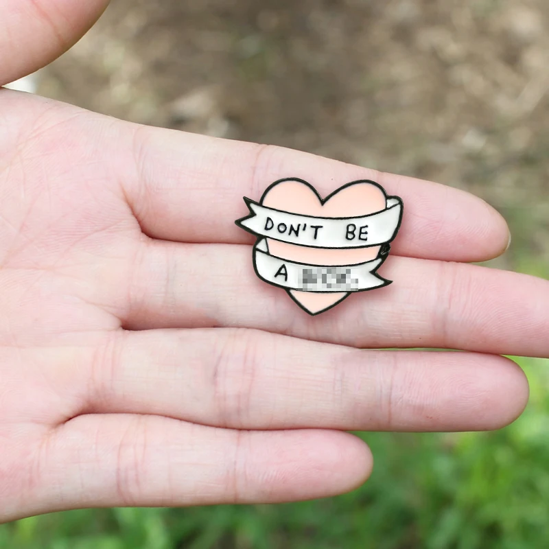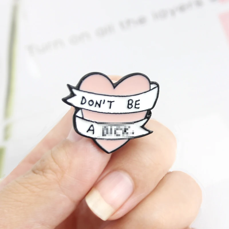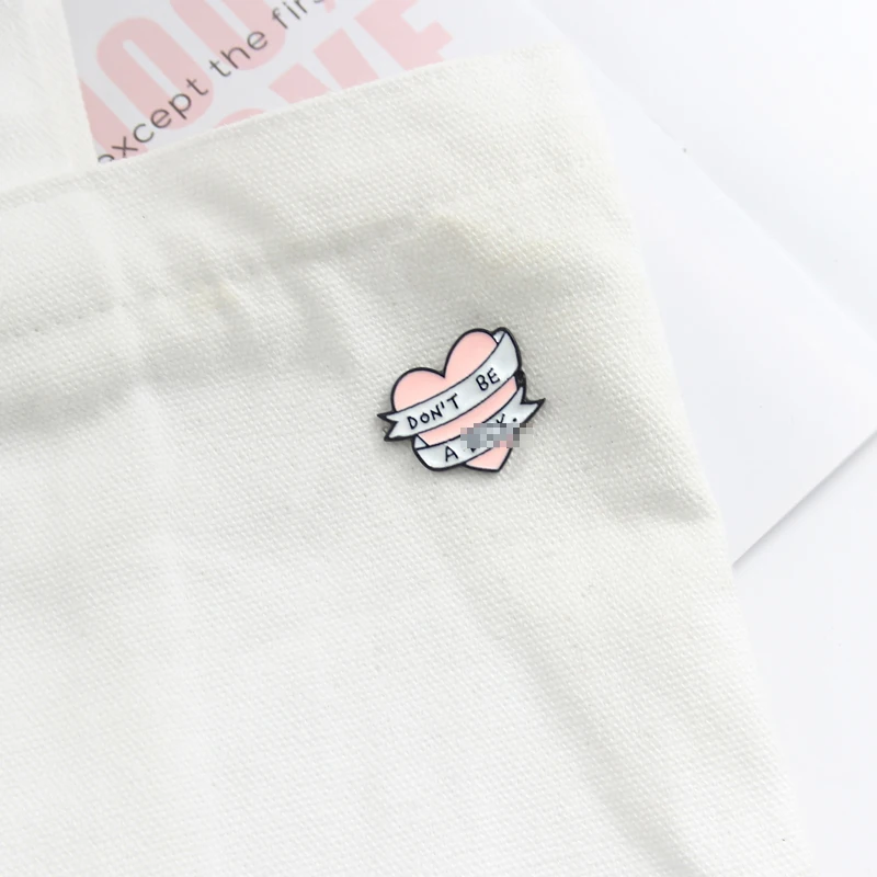Эмалированная булавка с розовым сердцем и белой лентой, булавка для сумок, одежды, лацкана, пуговица, значок, мультяшное ювелирное изделие, подарок для друзей