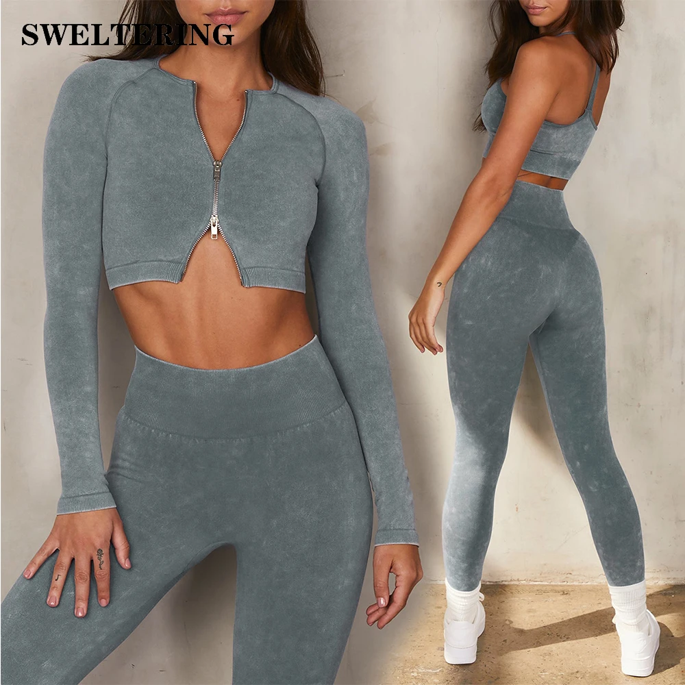 2021 песочные потертые джинсовые бесшовные вязаные костюмы для йоги...