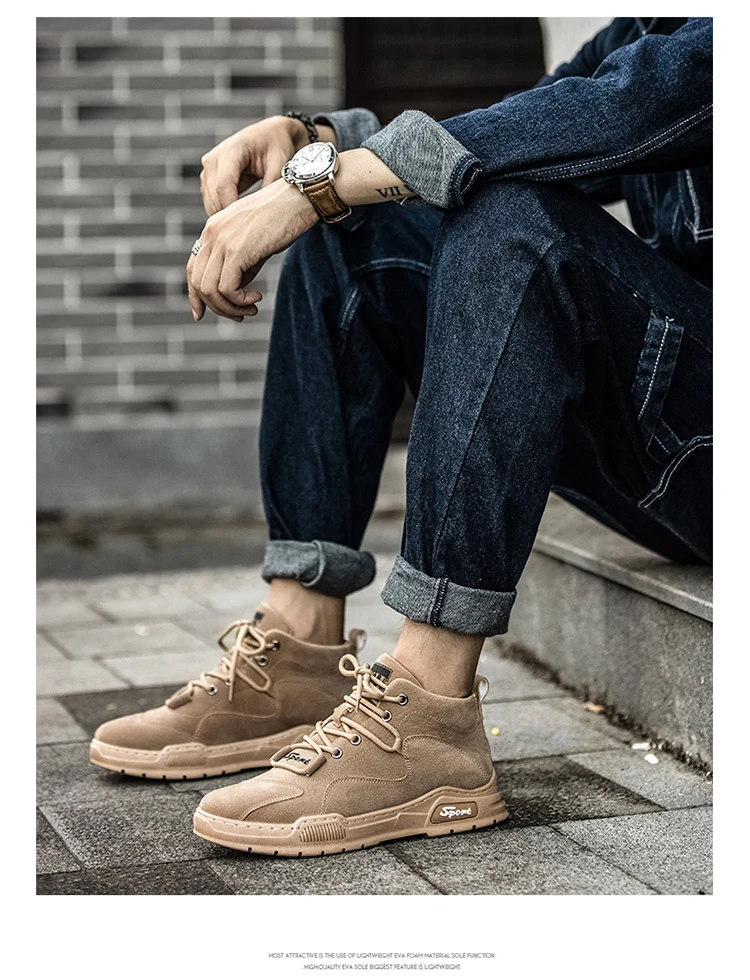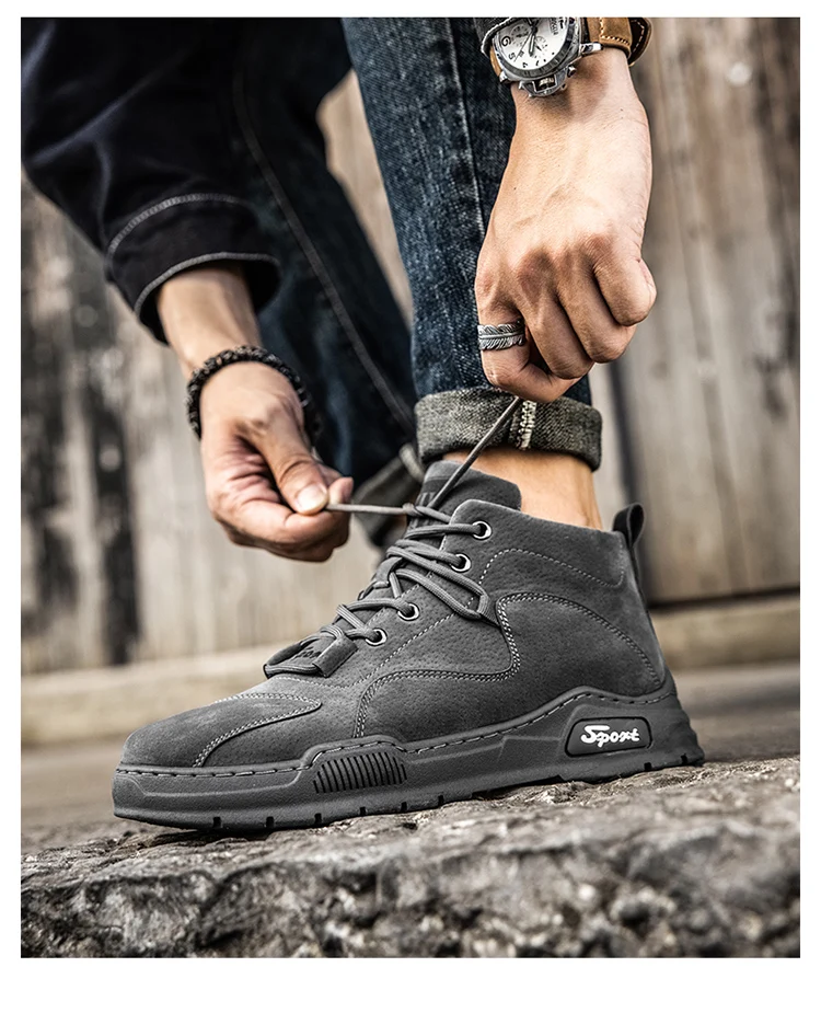 Мужские уличные ботинки с высоким верхом, походная обувь на платфор...
