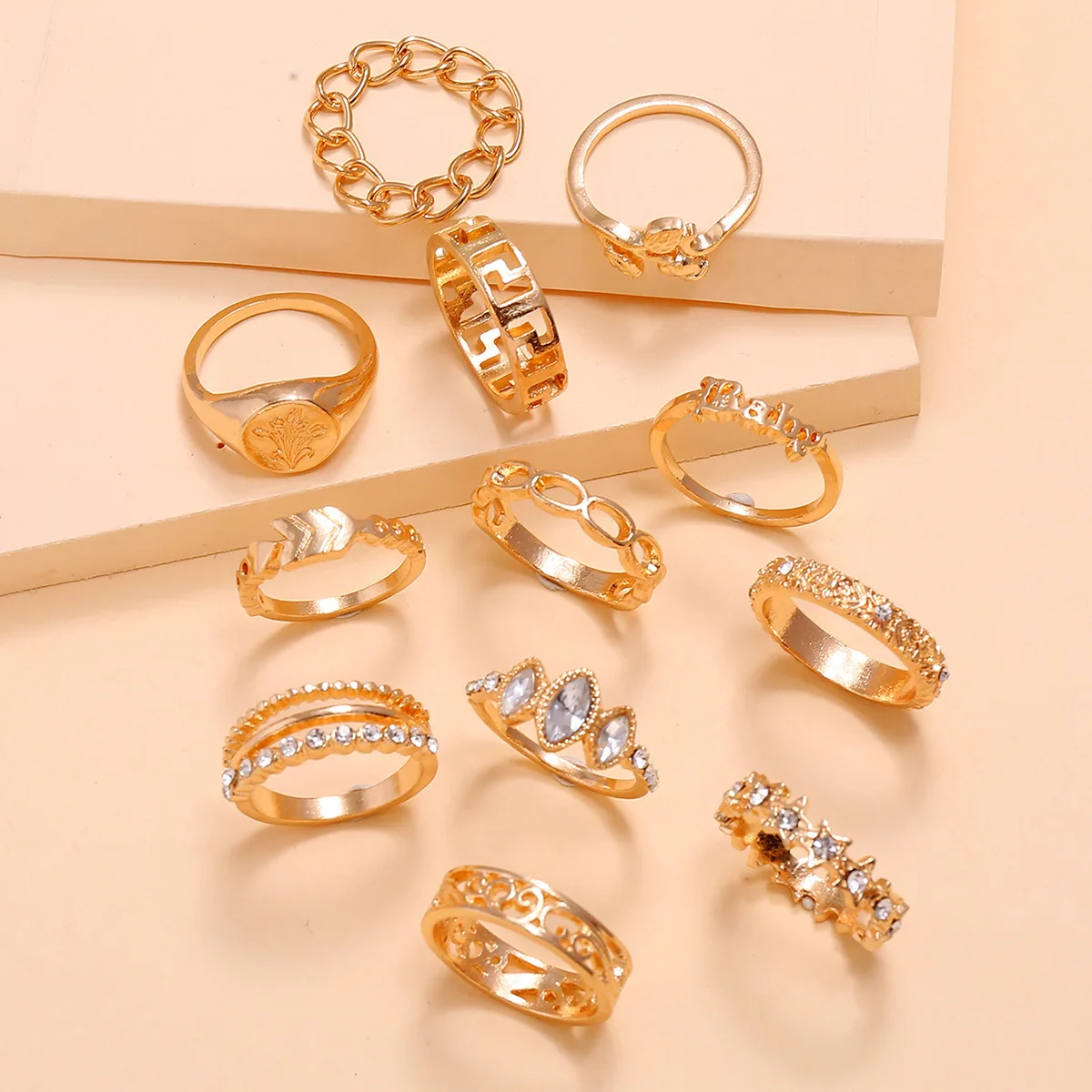 12 шт.компл., богемные кольца золотого цвета с открытым кристаллом ...