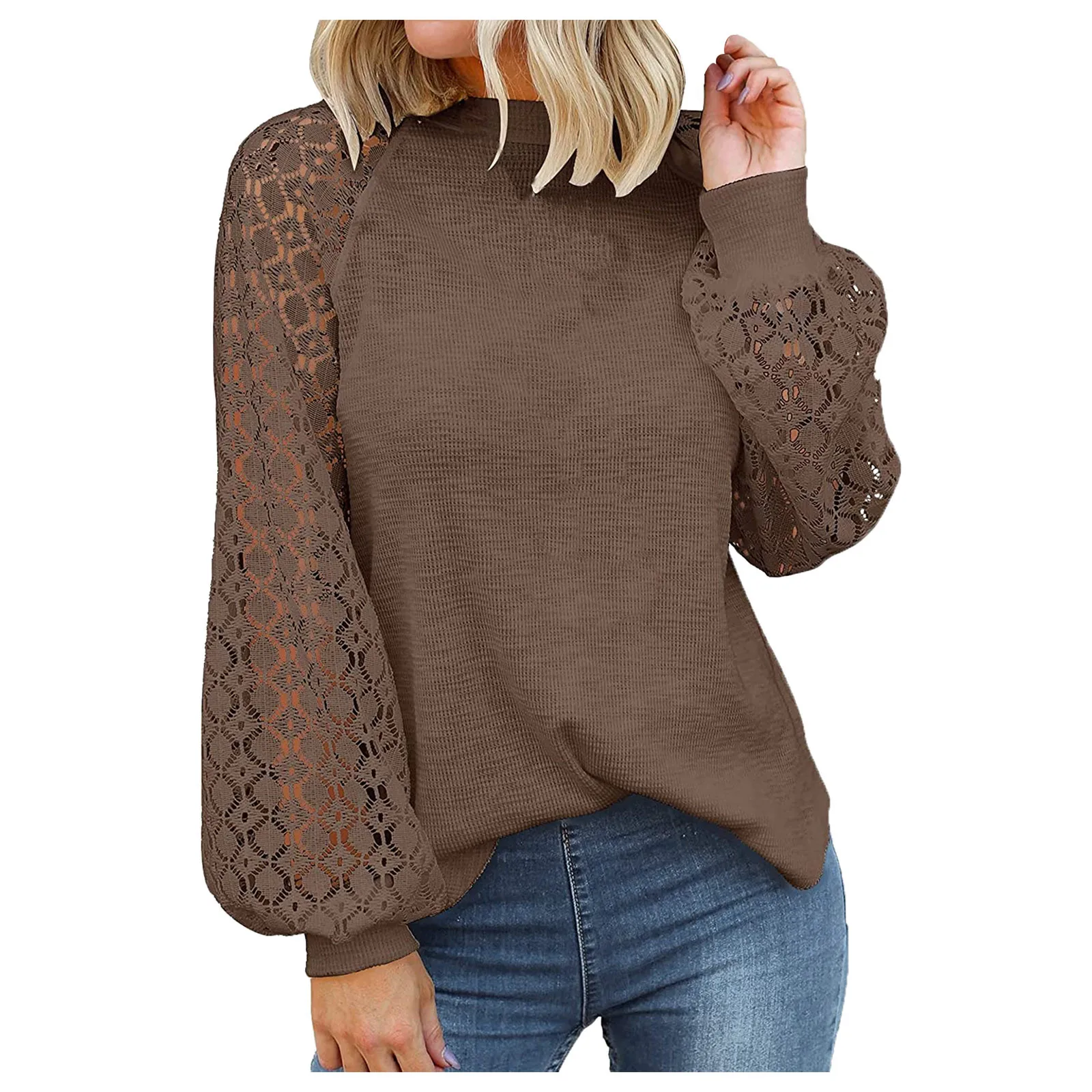 Осенне-зимние женские топы с круглым вырезом и длинными рукавами, кружевные свободные топы, свитера, блузки