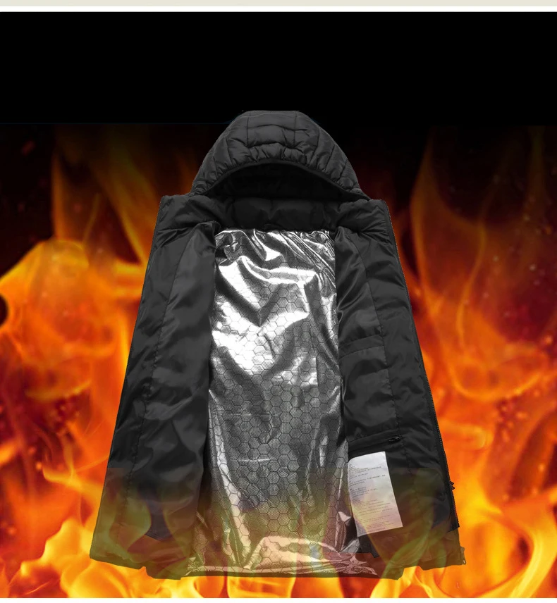 Мужские зимние теплые куртки с подогревом на 4 места, стеганые куртки с USB-подогревом, умный термостат, однотонная водонепроницаемая одежда с капюшоном и подогревом
