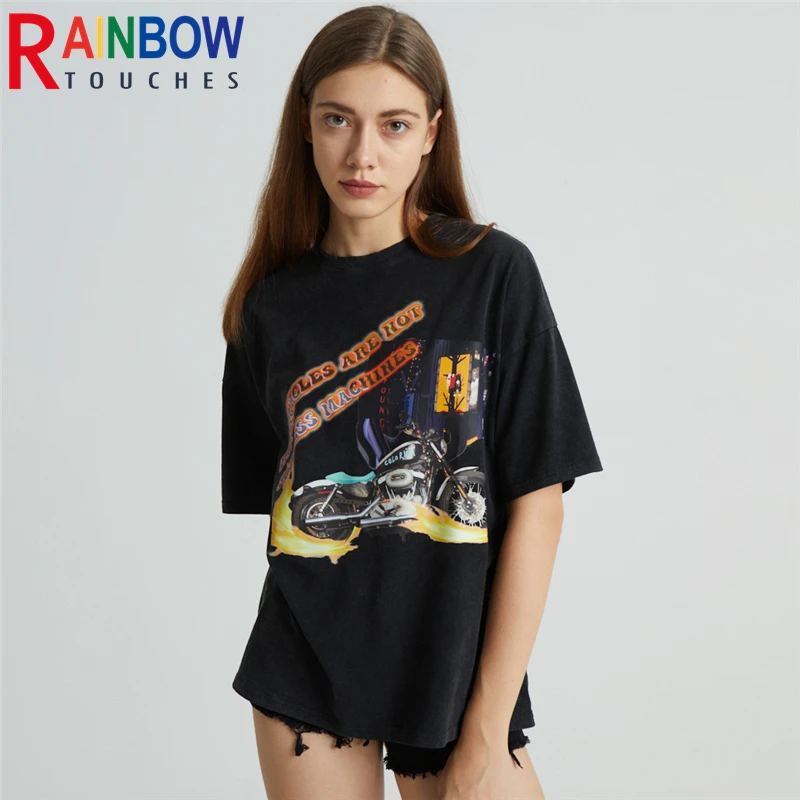 Футболка Rainbowtouches 2022 с коротким рукавом унисекс, свободная повседневная Модная стильная парная футболка в стиле хип-хоп