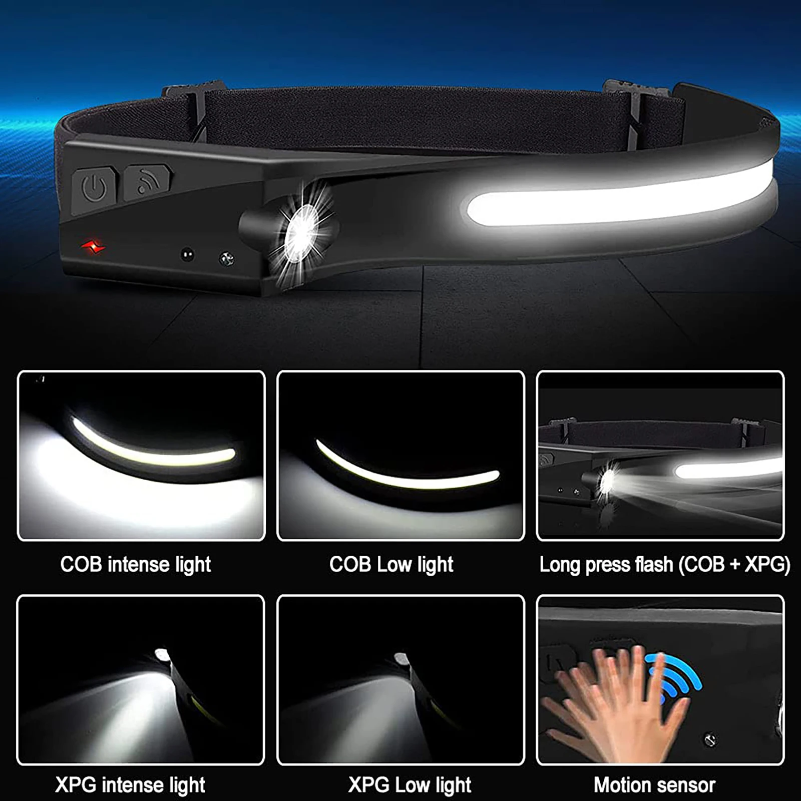 Использование: индукционные фары COB очень подходят для активного отдыха, таких как ежедневное движение, кемпинг, охота, туризм, ночная рыбалка и Ночная езда.