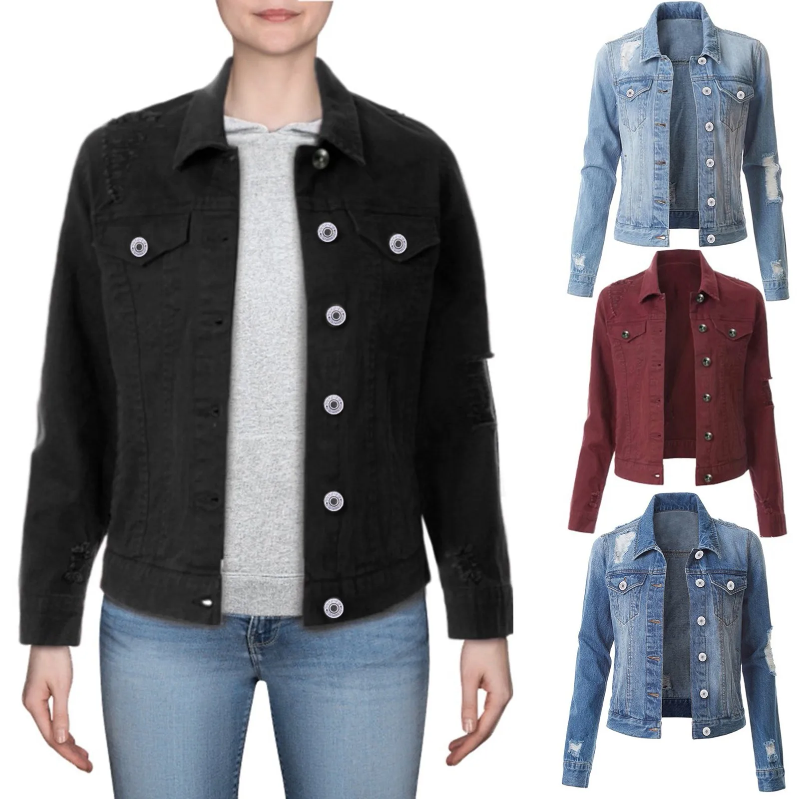 Женская джинсовая куртка с дырками, базовые куртки, Женская однотон...