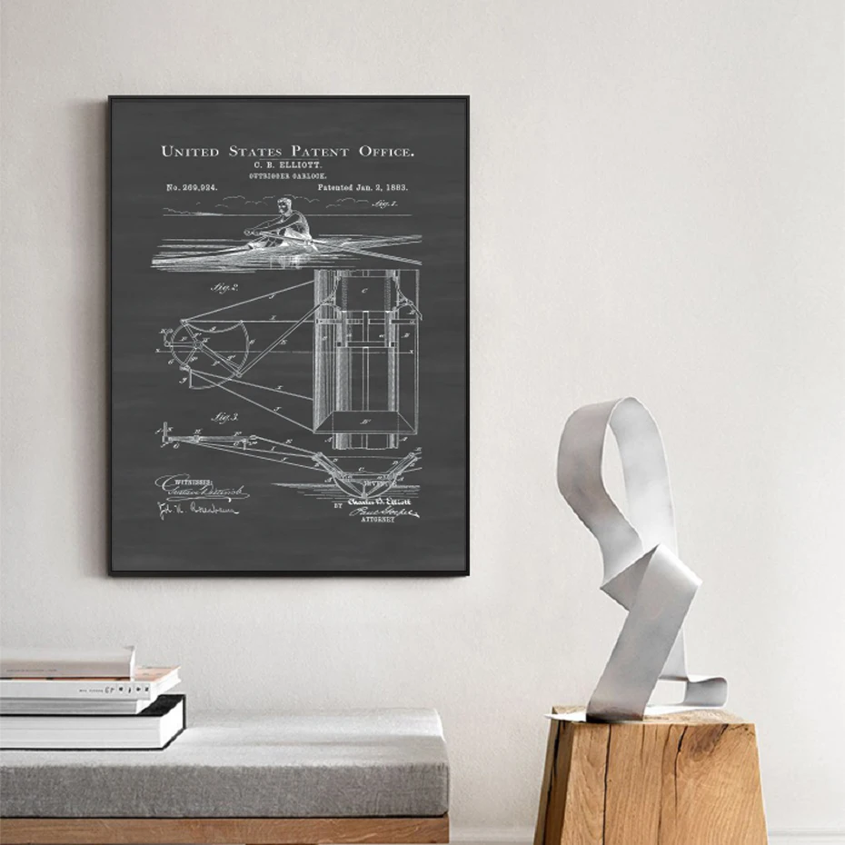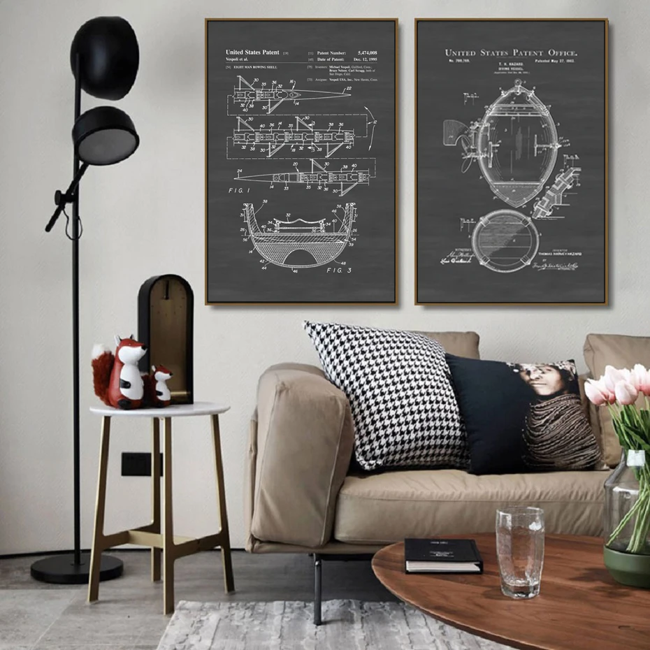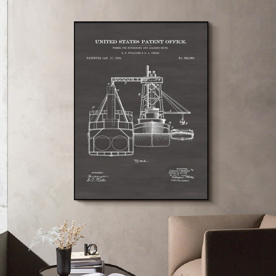 Черно-белый ретро Американский промышленный ветровой корабль конструкция Рисование плакат холст живопись настенное искусство кабинет украшение для дома