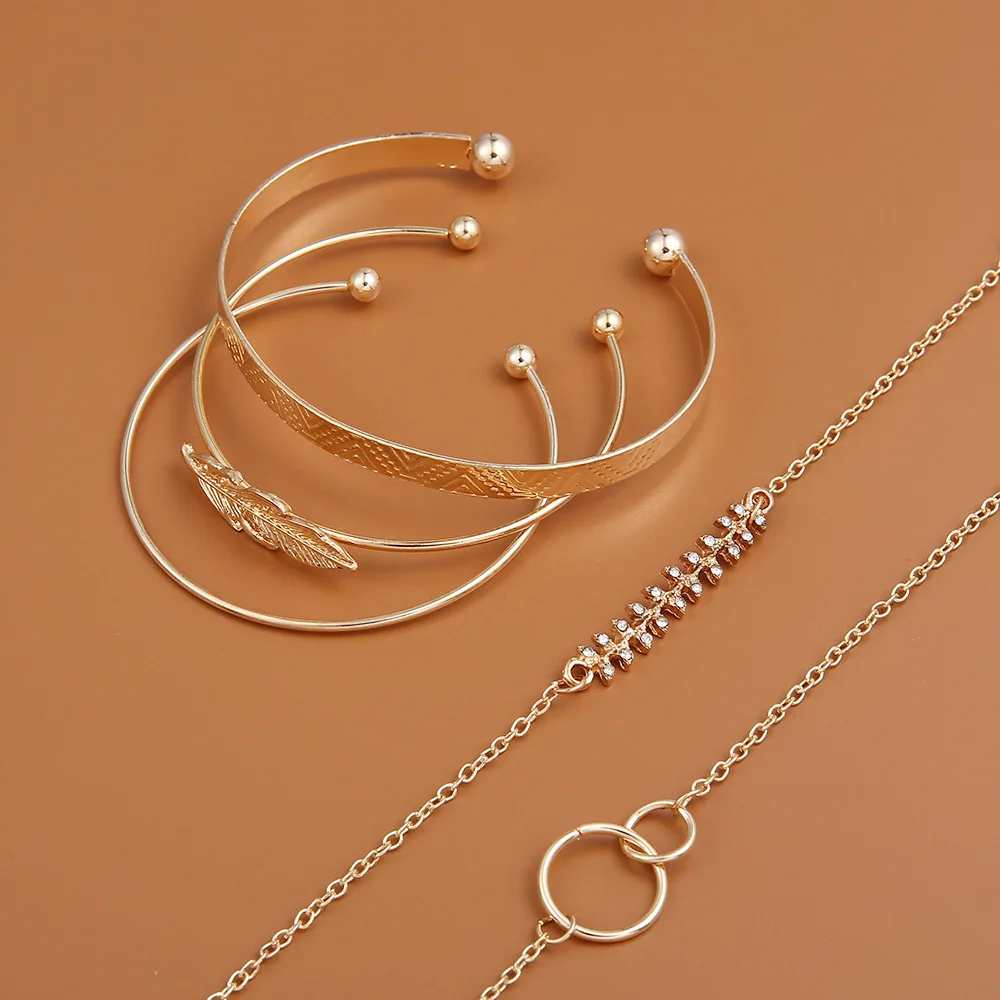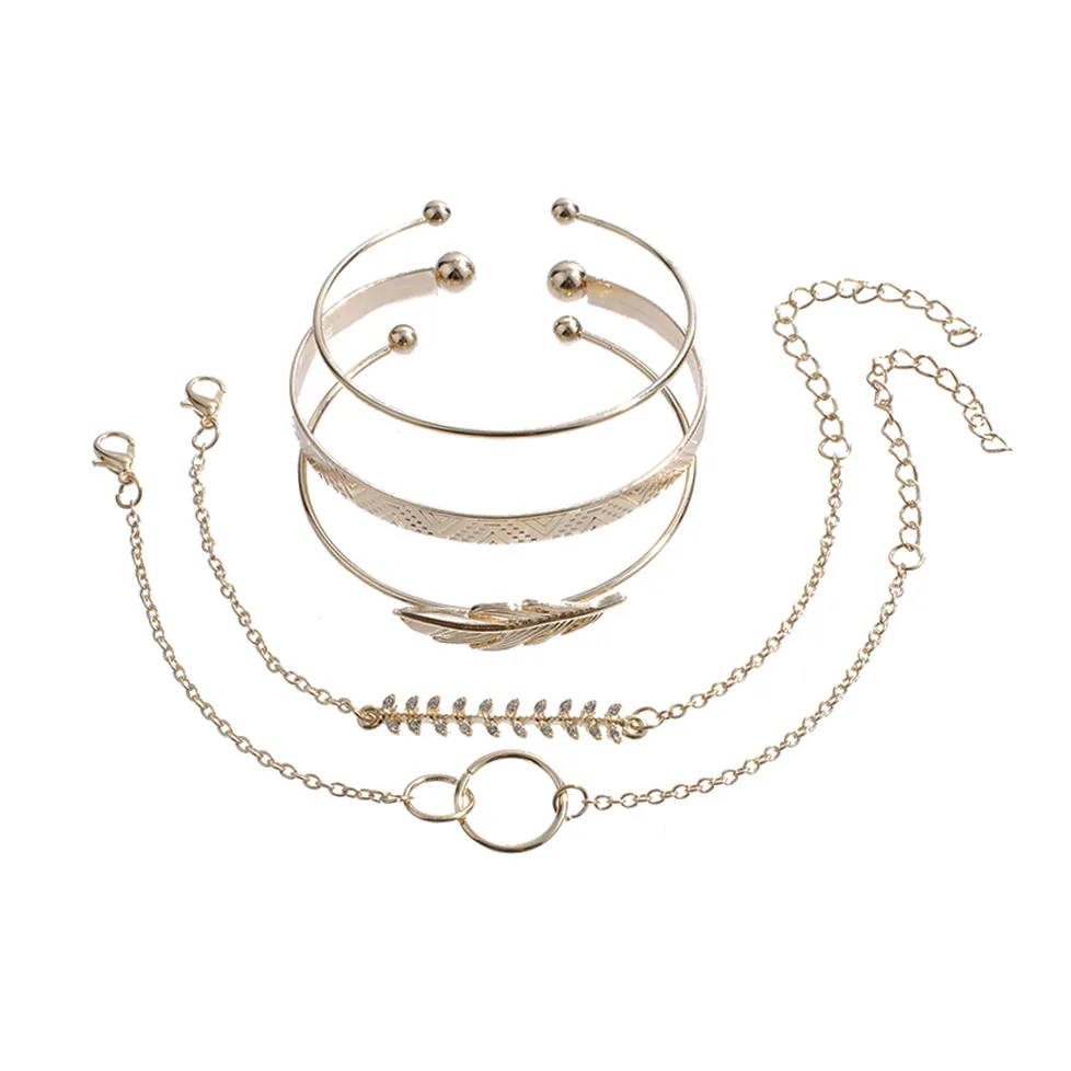 Новый геометрический Открытый браслет для женщин, Винтажный Браслет-манжета с узором листьев и подвеской, браслет-цепочка для девушек