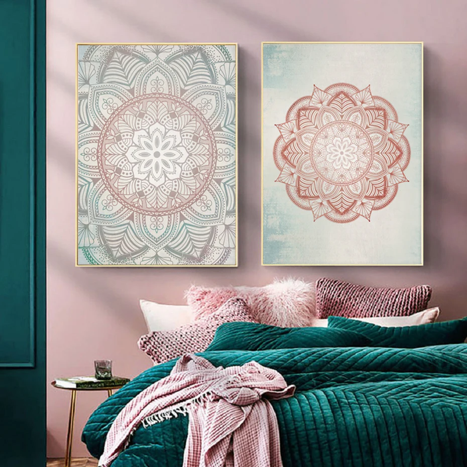Скандинавский минимализм тайская Мандала Йога розовый рисунок искусство стены спальня гостиная домашний декор