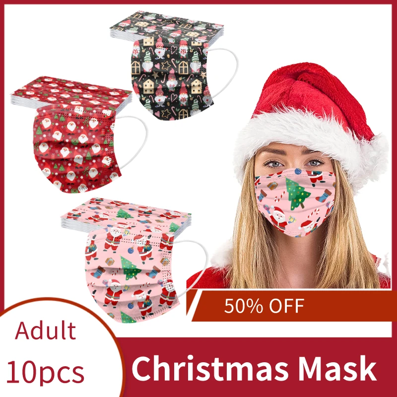 Маска для Хэллоуина с рождественским принтом для взрослых, 10 шт., одноразовая маска, промышленная трехслойная маска унисекс для косплея, одноразовая маска