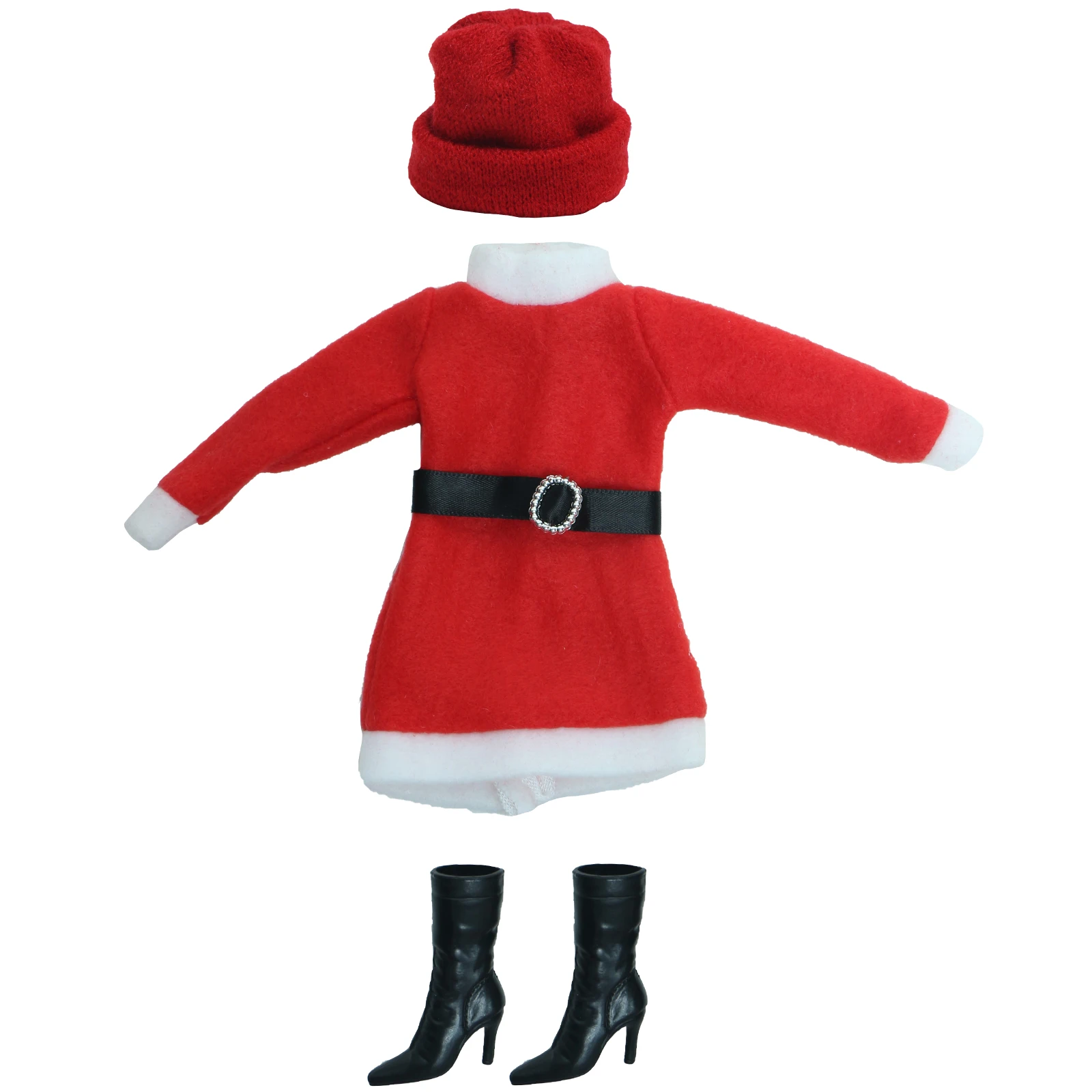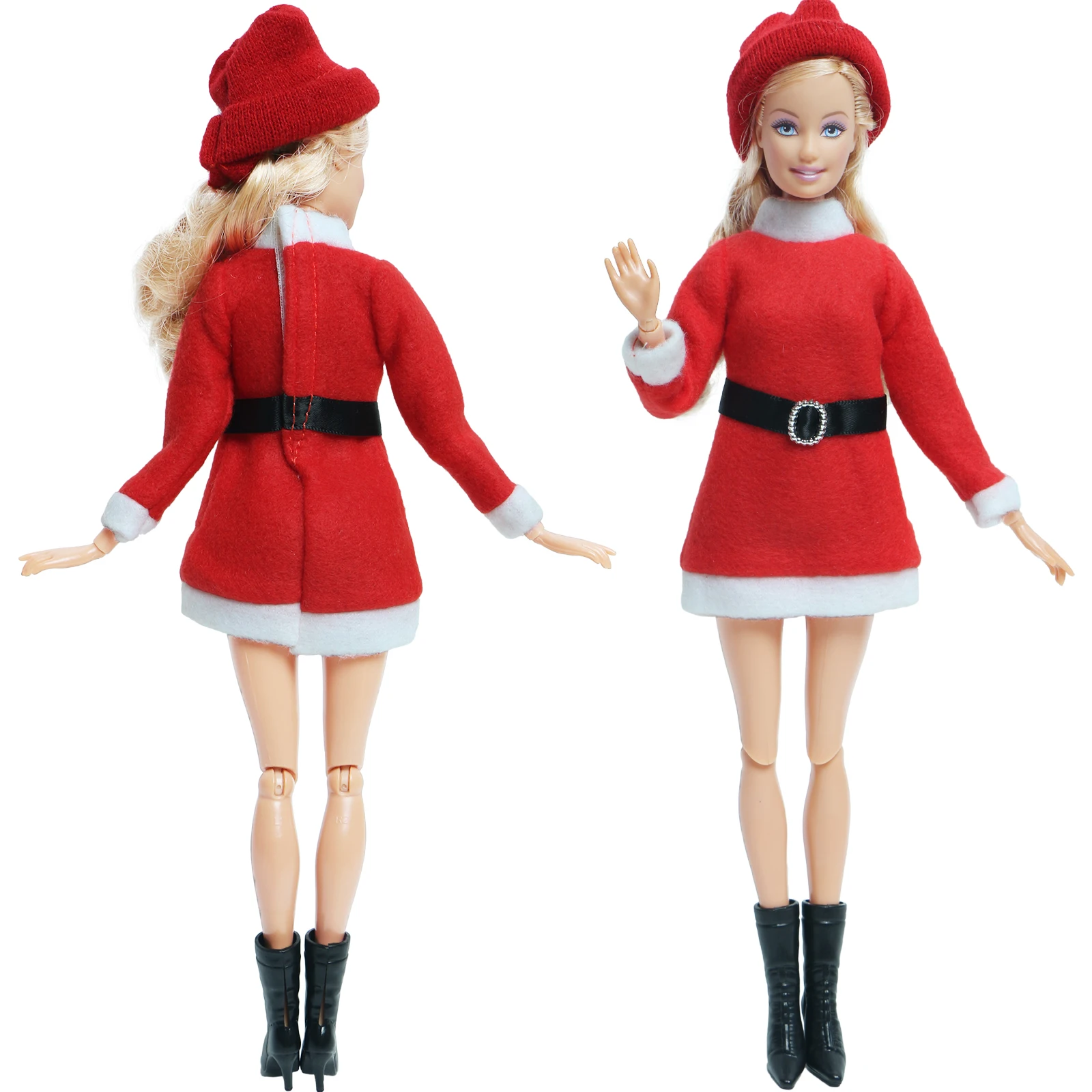 Рождественское платье для куклы BJDBUS, одежда Вечерние, вязаная шапка, мини-платье, обувь на высоком каблуке, сапоги, Одежда для куклы Барби, аксессуары