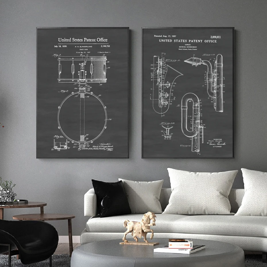 Черно-бело-серый минимализм ретро индустриальный Ветер музыкальный инструмент структура рисунок декоративная живопись постер домашний декор