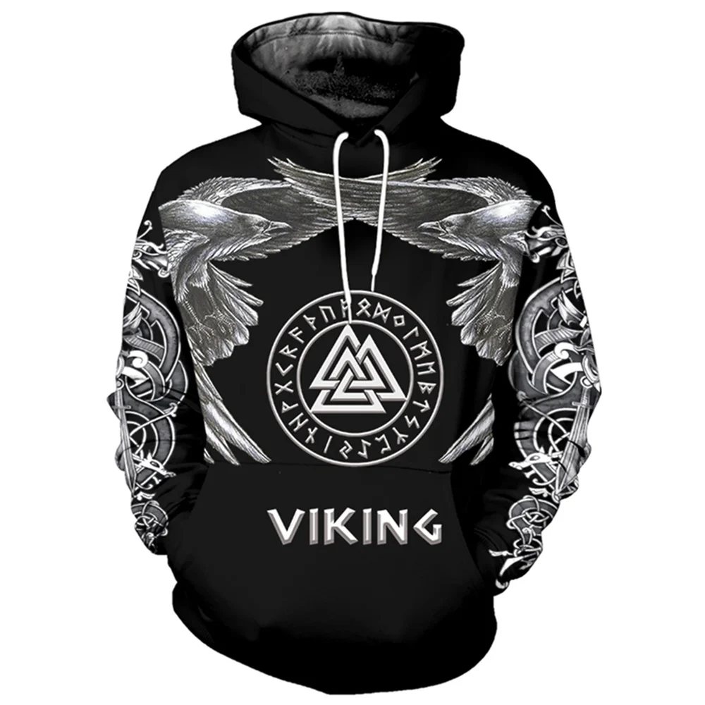 Толстовка мужская с капюшоном и 3D-принтом, в стиле викингов, полин...