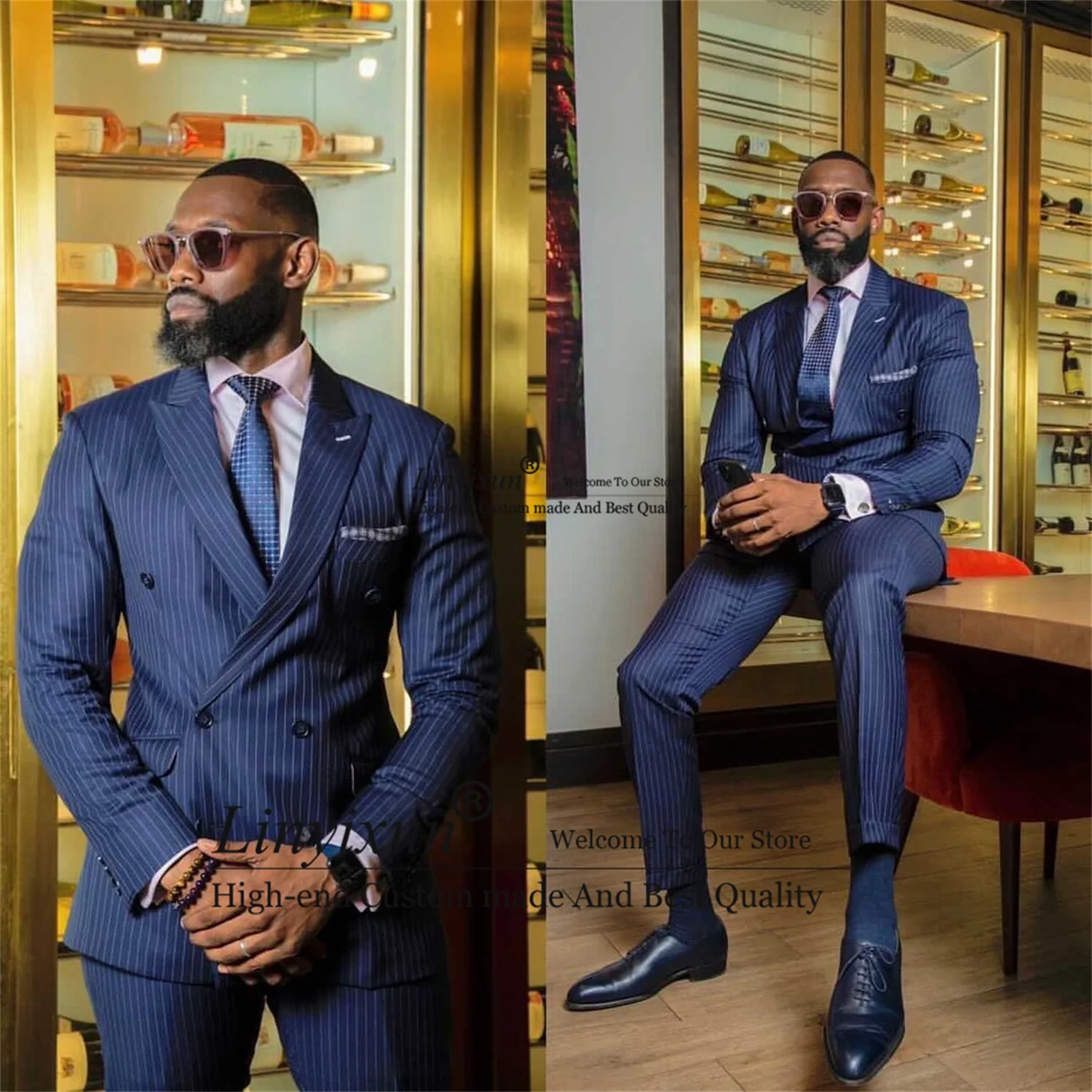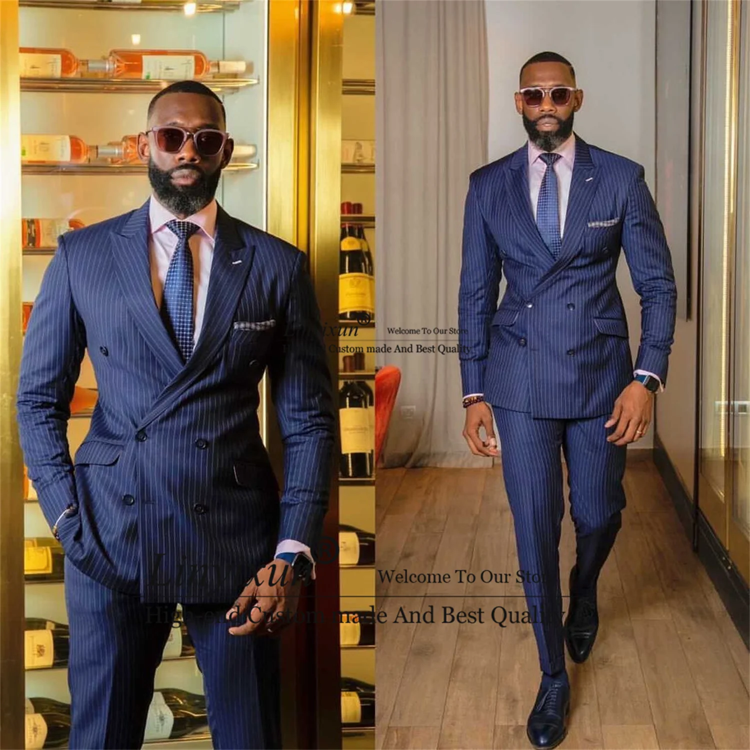 Классические Полосатые мужские облегающие костюмы, двубортные свадебные костюмы для жениха, мужские блейзеры из 2 предметов, пиджак и брюки, наборы