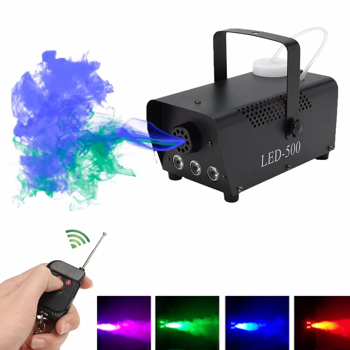Миниатюрная светодиодная RGB Беспроводная туманная дымовая машина, 500 Вт, Эффект диско-Джея вечерние НКА на Рождество с дистанционным управлением, светодиодный дымовой генератор, европейская вилка