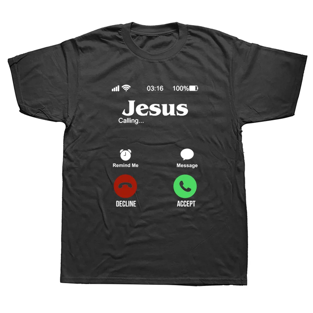 Мужская футболка с коротким рукавом и круглым вырезом, с изображением Иисуса звонит icon star icon star icon star icon star icon star